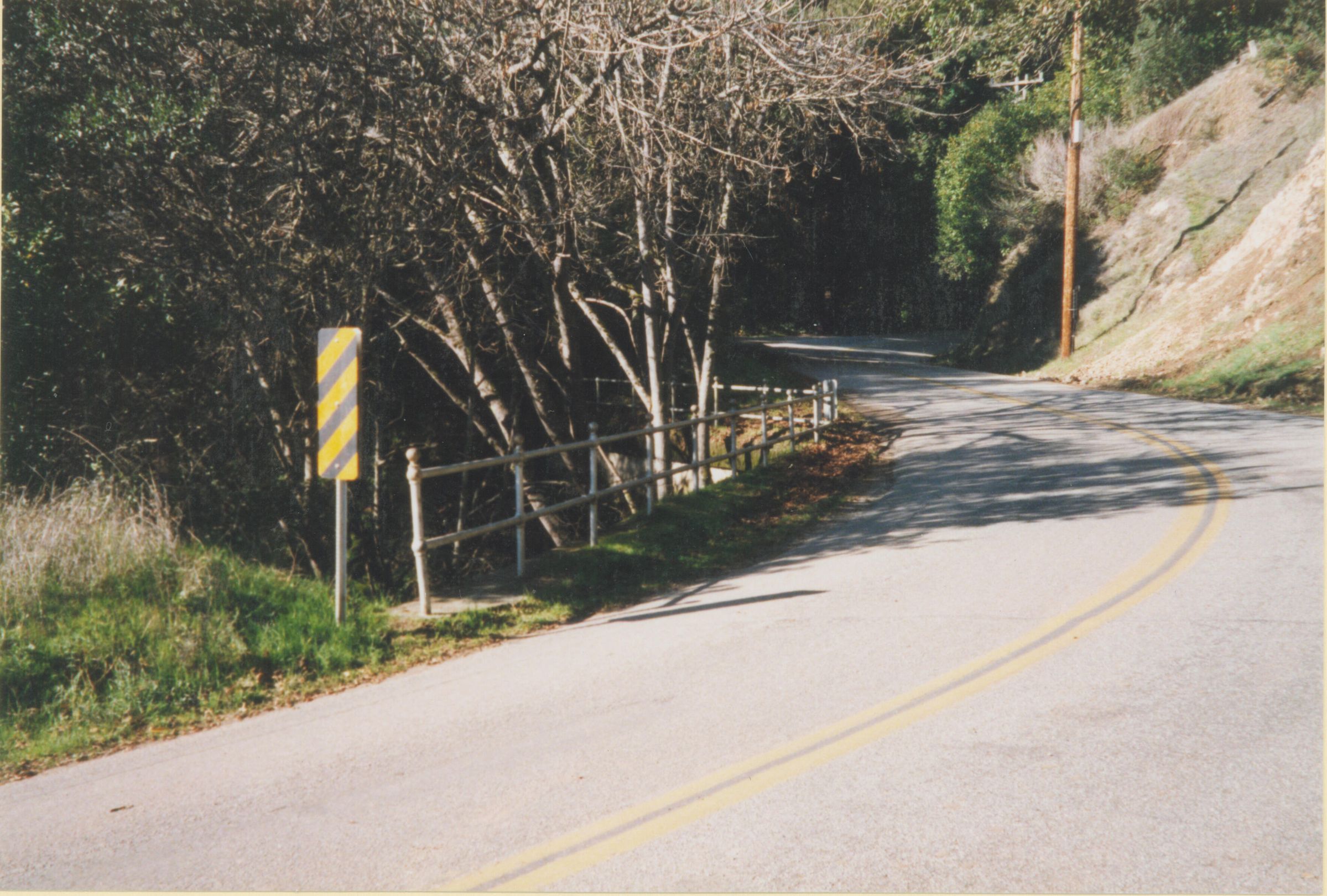 A view from Glenwood Road where, just below the railing is the south portal of the Glenwood-Wrights tunnel on what used to be the right-of-way of the South Pacific Coast R.R. and later the Southern Pacific R.R. LEI067Collection