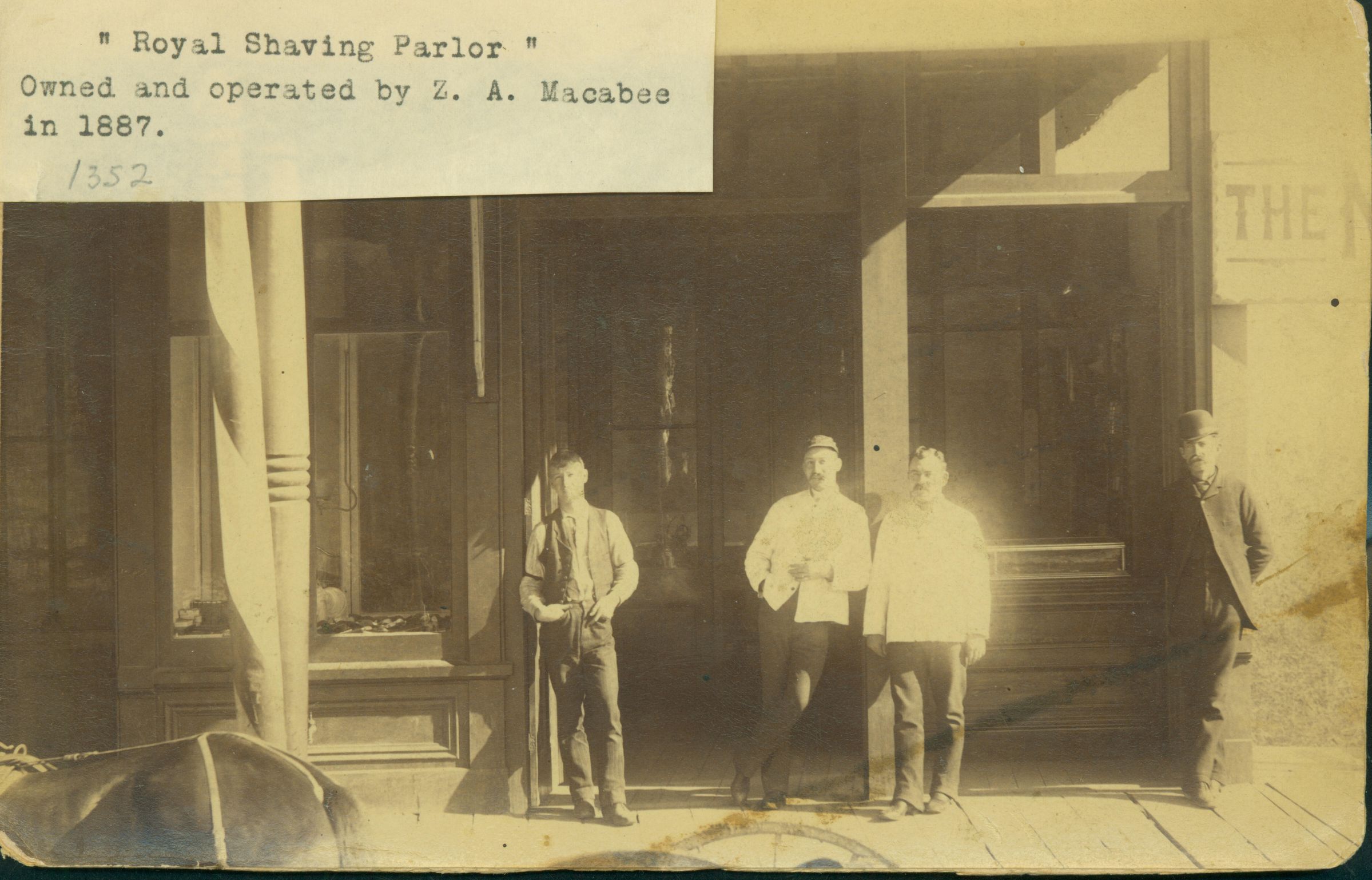 Z. A. Macabee, second from left, owned and operated the "Royal Shaving Parlor" in 1887. RID022Collection