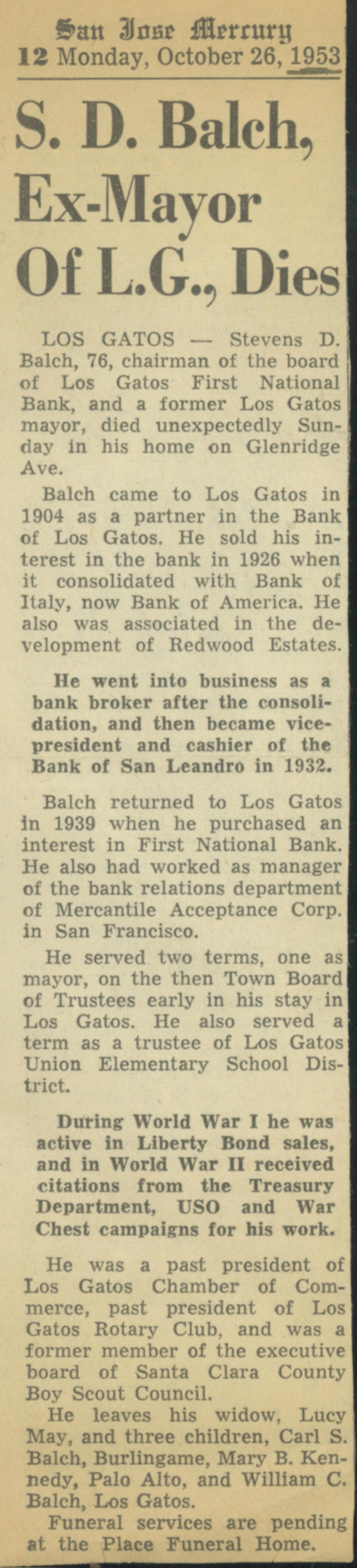 S. D. Balch died unexpectedly at his home in Los Gatos. BBC115