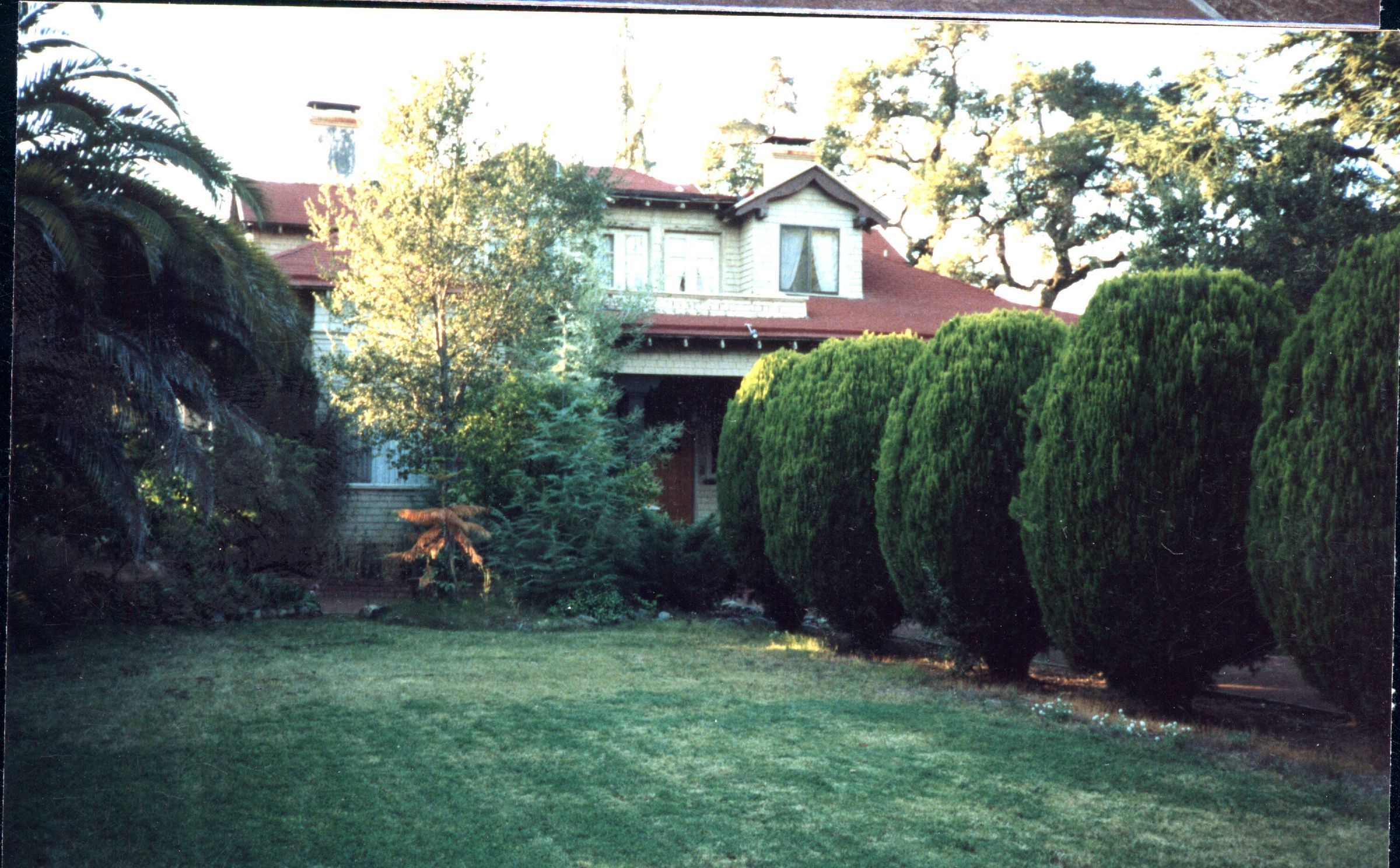 Joseph Cerrito and his wife Elizabeth lived here from 1955 to 1969. He was the owner of the Lincoln/Mercury car dealership on No. Santa Cruz Ave, and other dealerships in town. This is a view of the side of the front yard of 421 (later the road was changed to Los Gatos Blvd.) RES290Collection