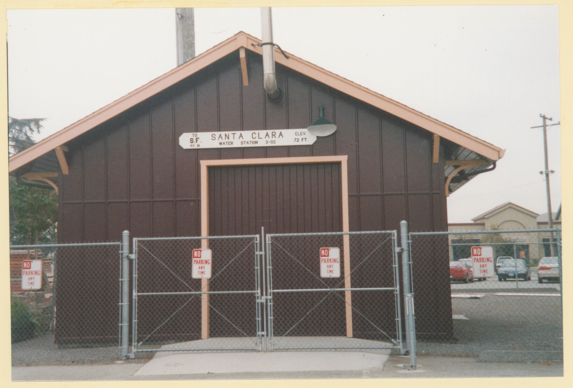 Looking south at the Santa Clara train station that was once used by the South Pacific Coast (S.P.C.) and Southern Pacific (S.P.) railroads. This depot is active today. LEI026Collection