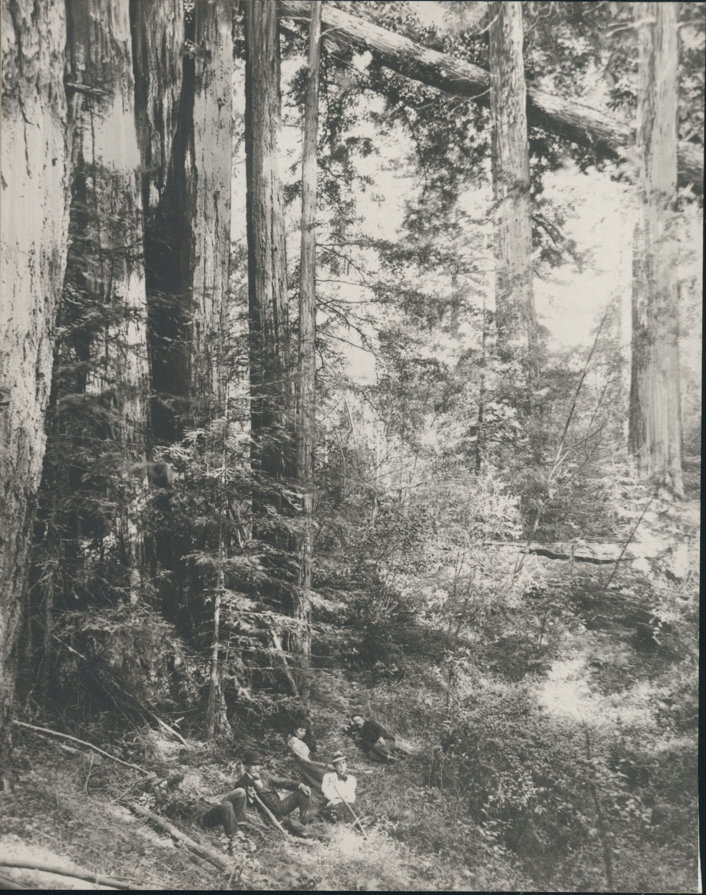 Hikers rest on a trail in the Santa Cruz mountains. MTN061Collection