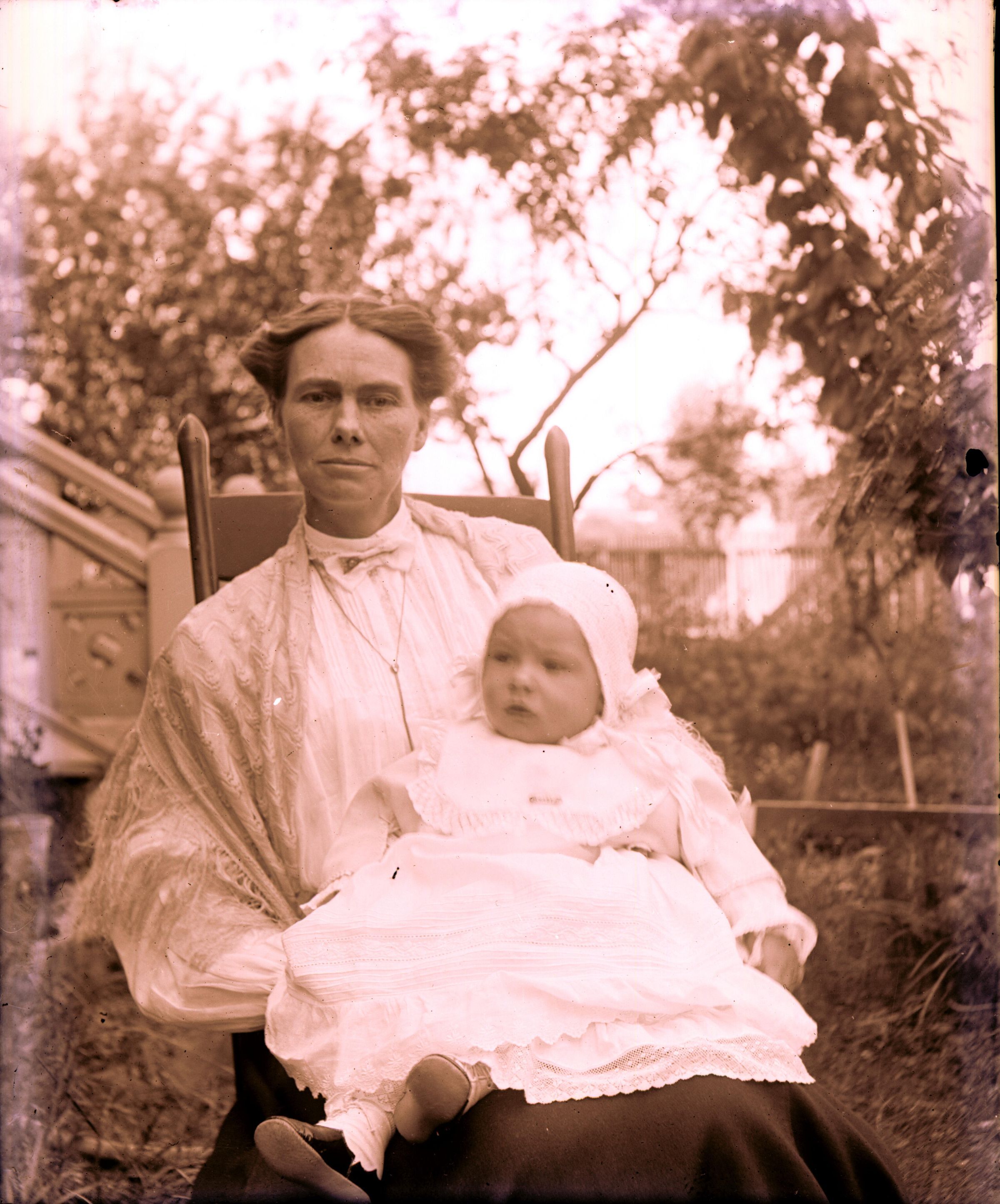 Seated lady holding baby