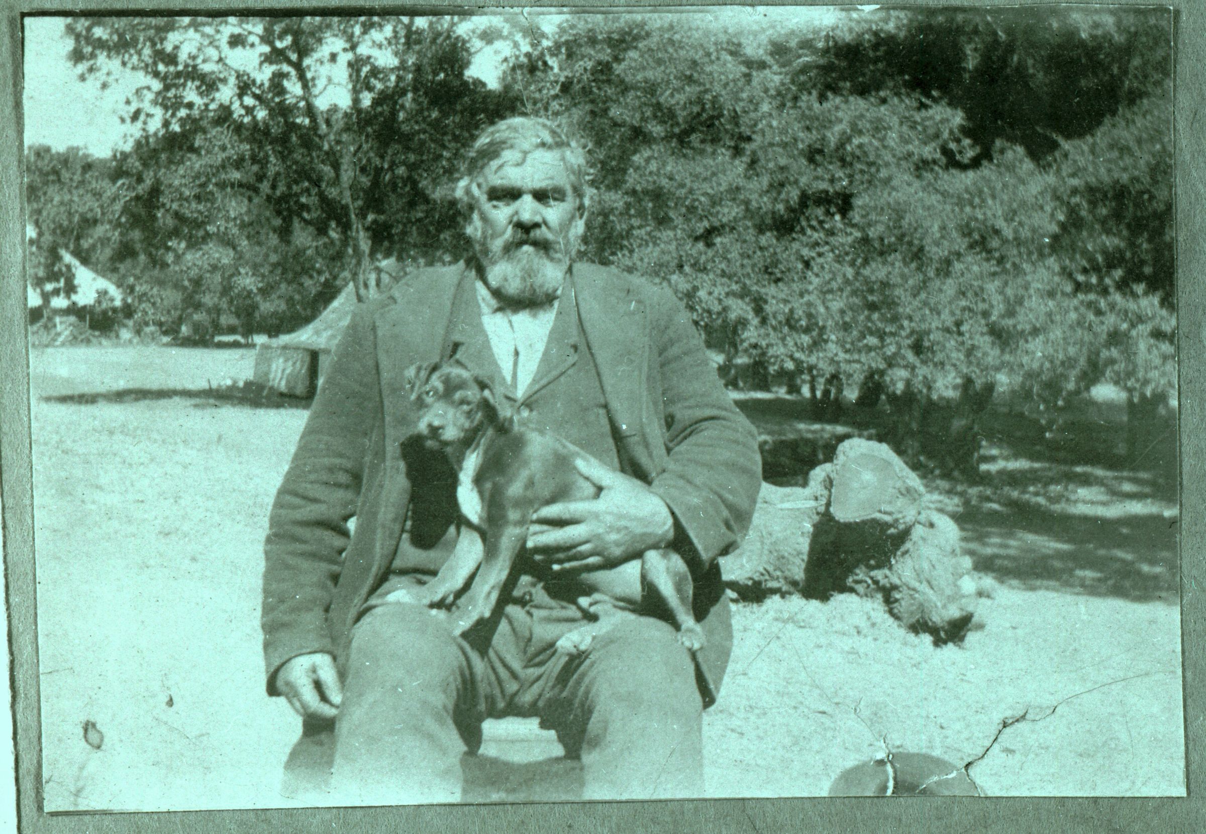 William C. Shore (1830-1905) is shown here on land which he donated to the town in 1897 for the creation of Bunker Hill Park. The park was later renamed Memorial Park, and was the site of many of the town's celebrations in the early days of its history. The park was in an idyllic location, along Los Gatos Creek, south of the Main Street Bridge. SHU006Collection