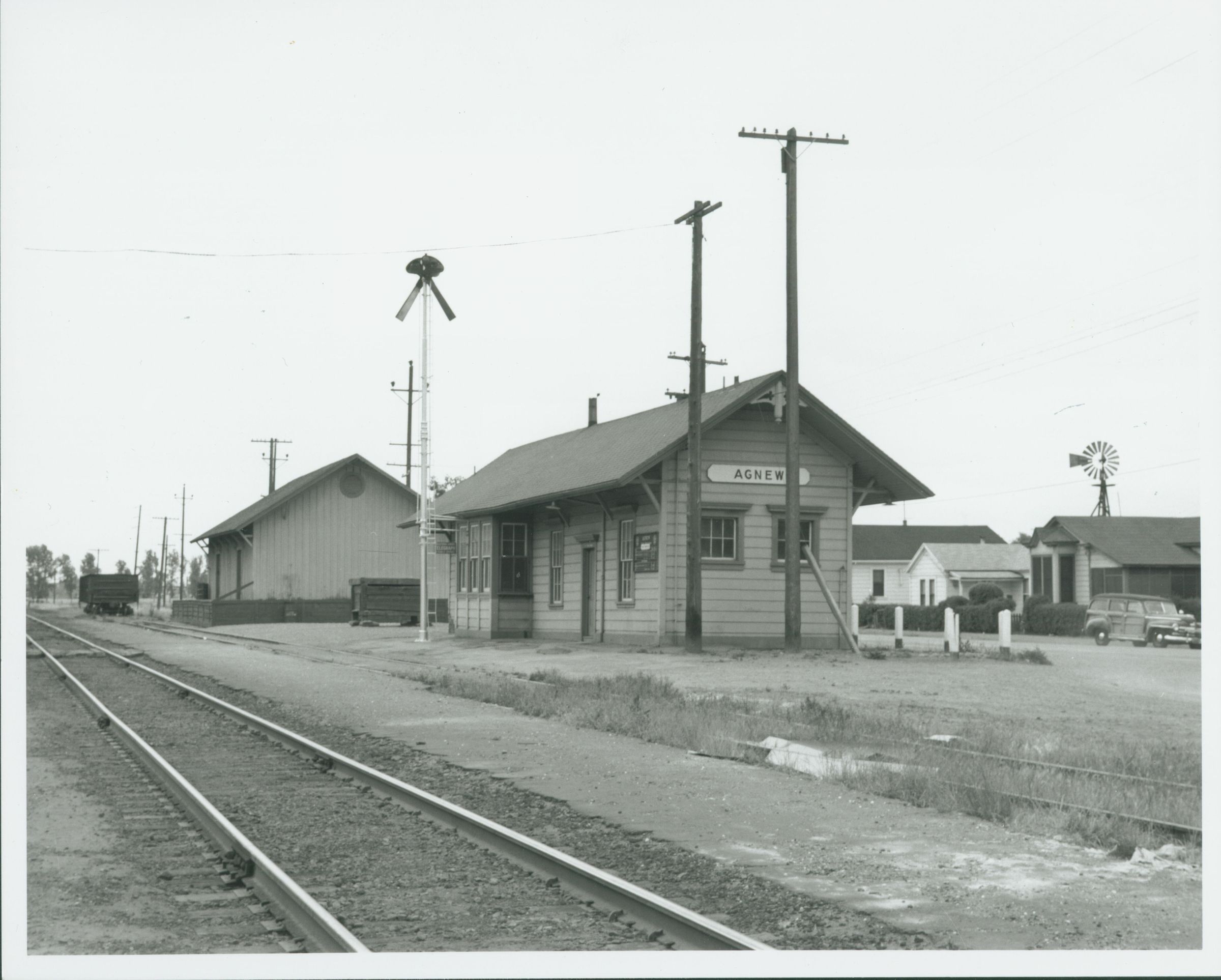 A view from the north showing the Alviso Depot once used by the South Pacific Coast (S.P.C.) and Southern Pacific (S.P.) railroads. Trains no longer stop here. LEI021Collection