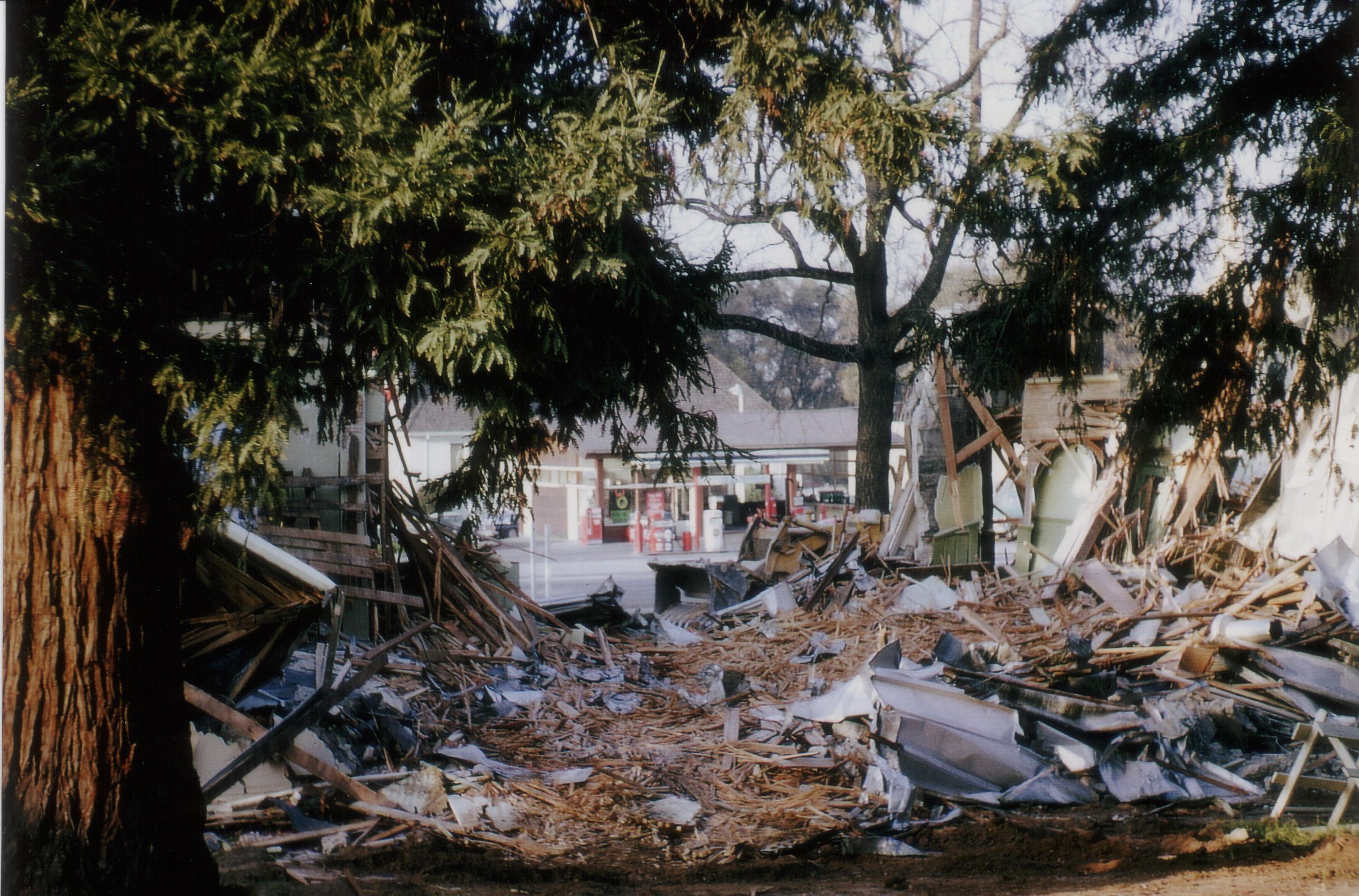 When the old 1913 Town Hall was demolished, a view of the gas station across the street opened up. EJ031Collection