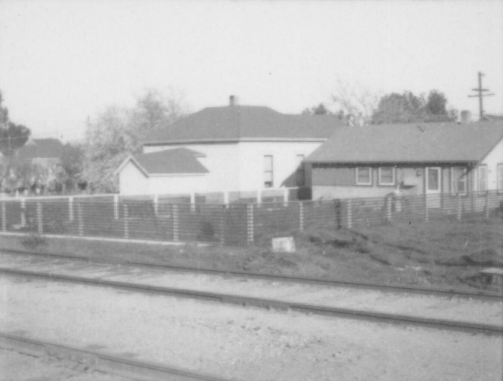 Backyards on unknown residences along Southern Pacific Railway tracks.