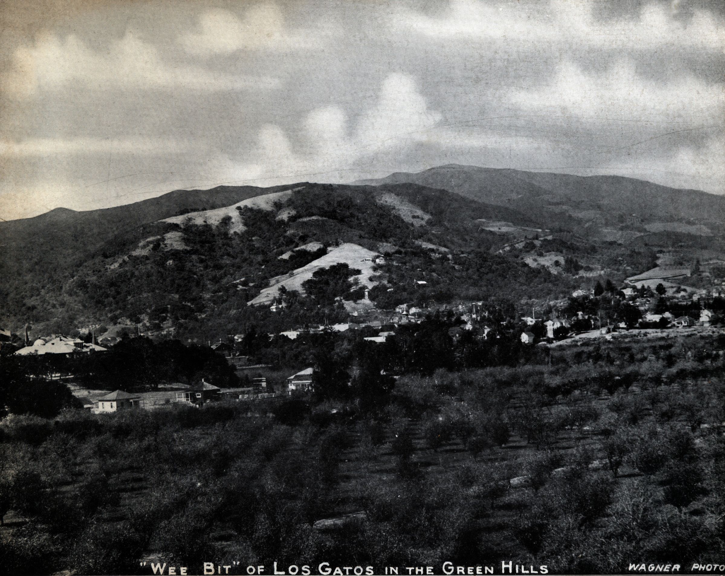 This photograph is titled "Wee Bit of Los Gatos in the Green Hills," and was taken by Wagner Studios, a Los Gatos company. BER062Collection