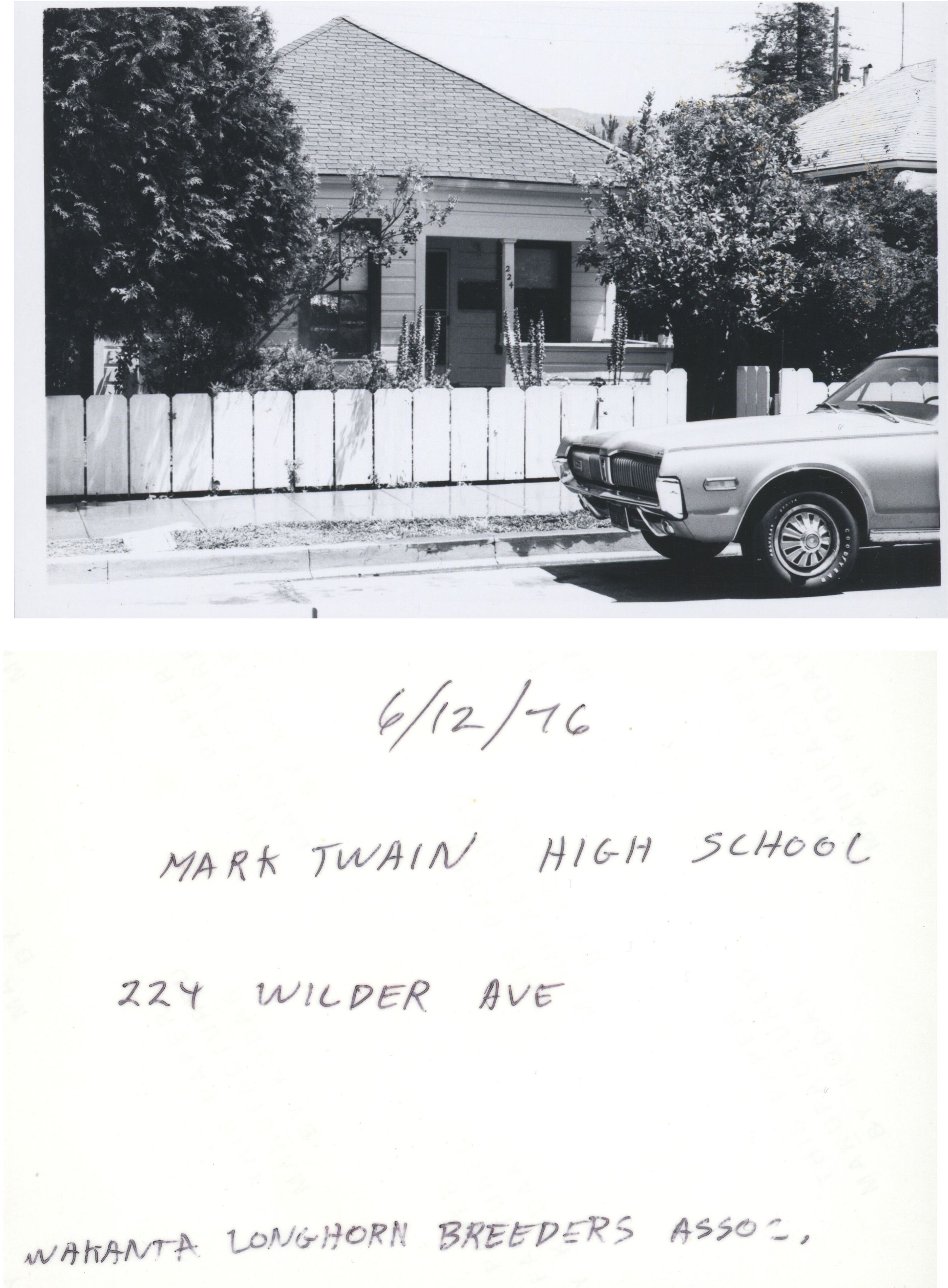 The owner of this home in 1934 was G.F. Hitt, and in 1964 Mrs. Rosemary Faler lived here. This was the first location of Mark Twain Continuation High School, mandated after 1967 legislation stated that all public high schools must offer a continuation school for students who had trouble keeping up with the curriculum or the social pressures of the local high school. The school moved to Farley Rd in 1977 to share buildings with the district offices. In 1992, due to financial shortcomings in the district, the off-campus location was abandoned and the Continuation School was incorporated at Los Gatos High School on East Main Street. RES269Collection