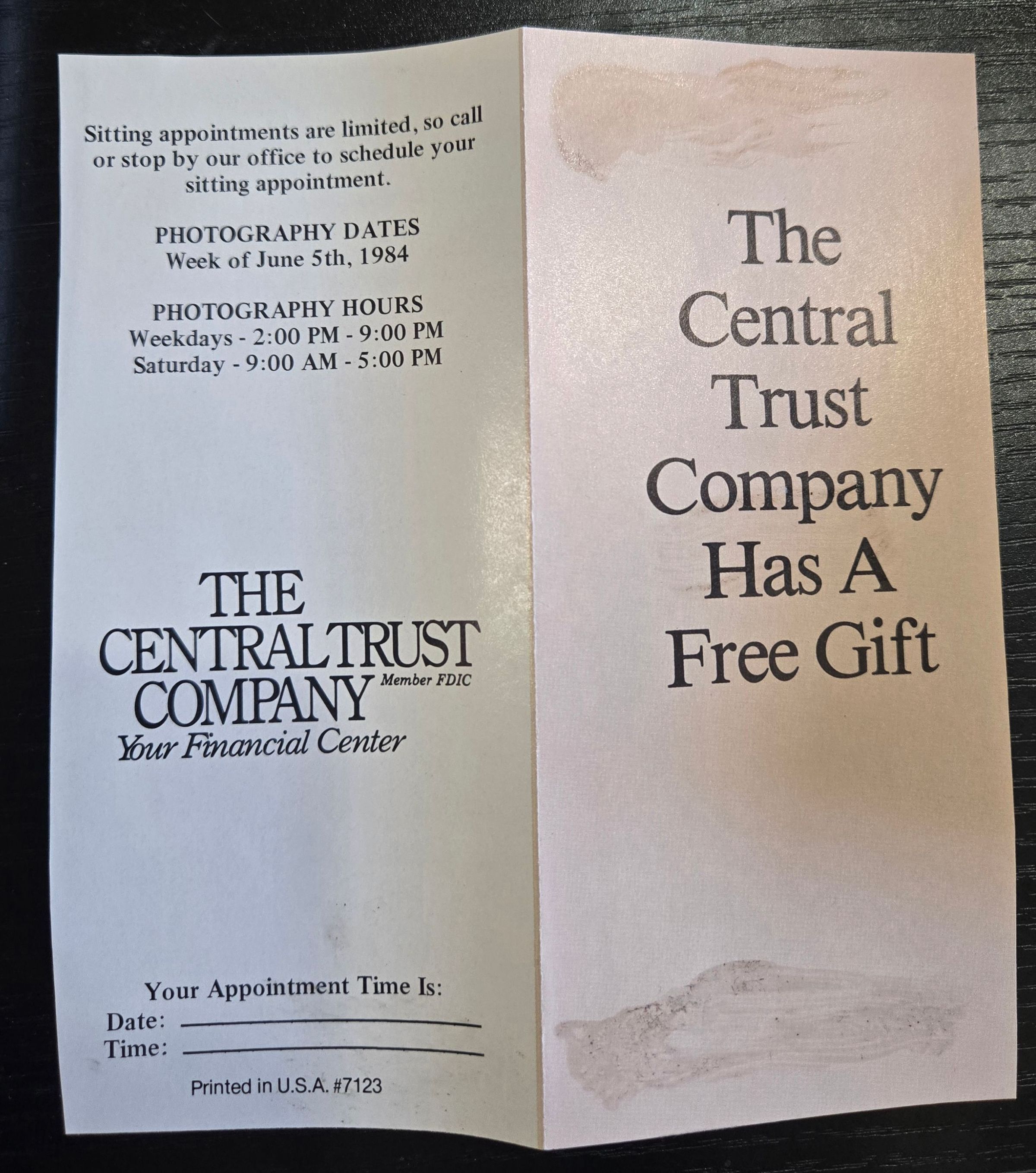 Advertising Promotion from Central Trust Company on June 9th, 1984.