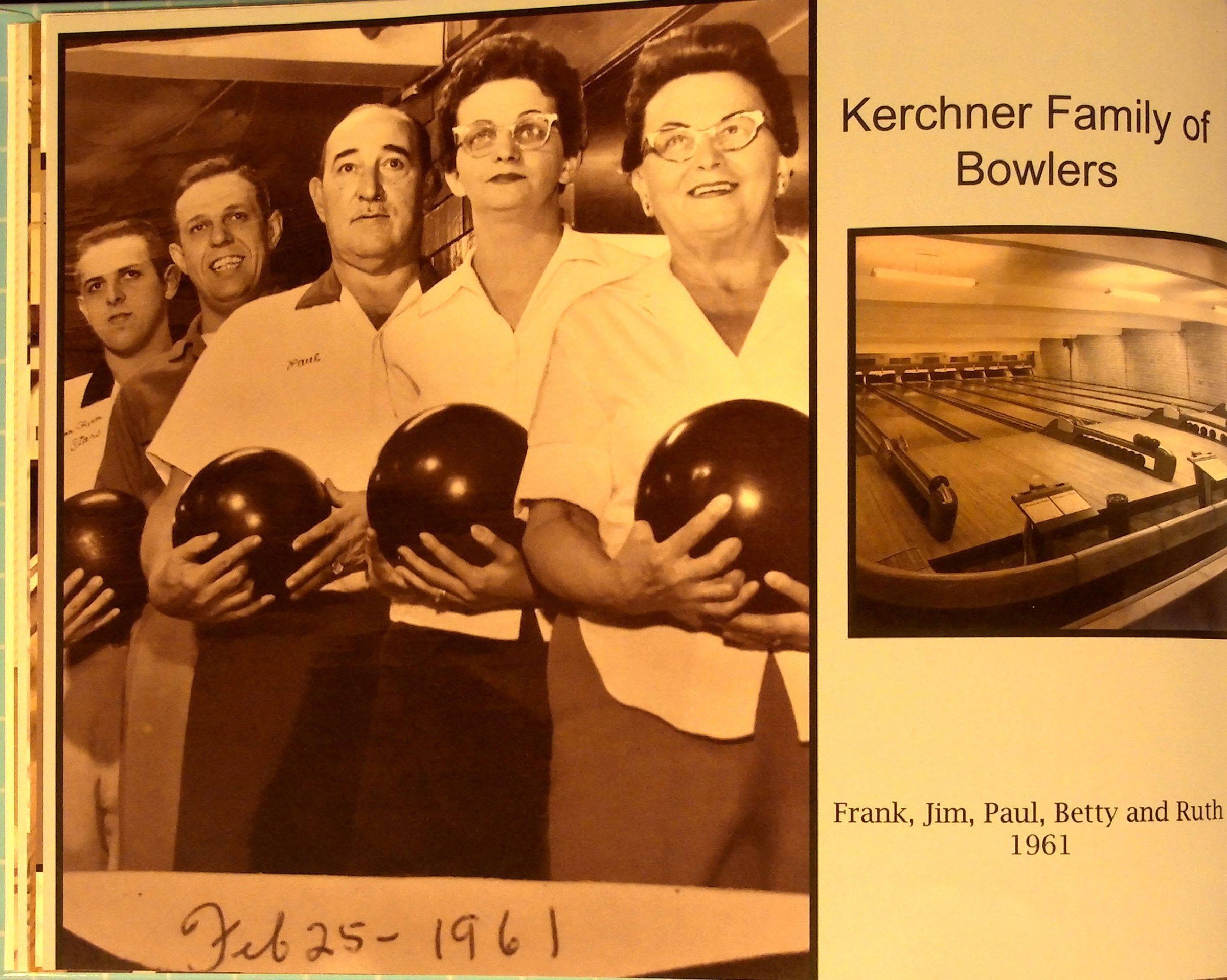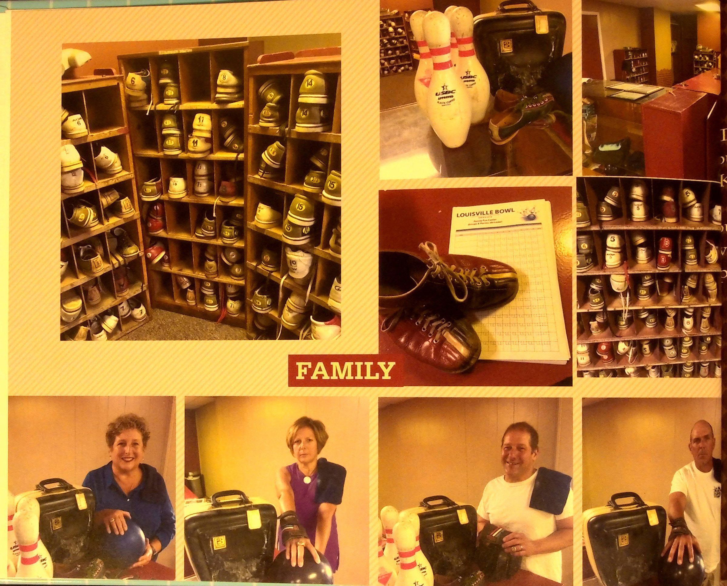 Family photo book created in 2018 using Shutterfly featuring the Louisville Bowl founded in 1948 and the Kerchner's family. Also has the Main Street Hair Salon, and the Kerchner's Kollectibles, Kards, Kandy Hallmark store that was also located on Main Street.