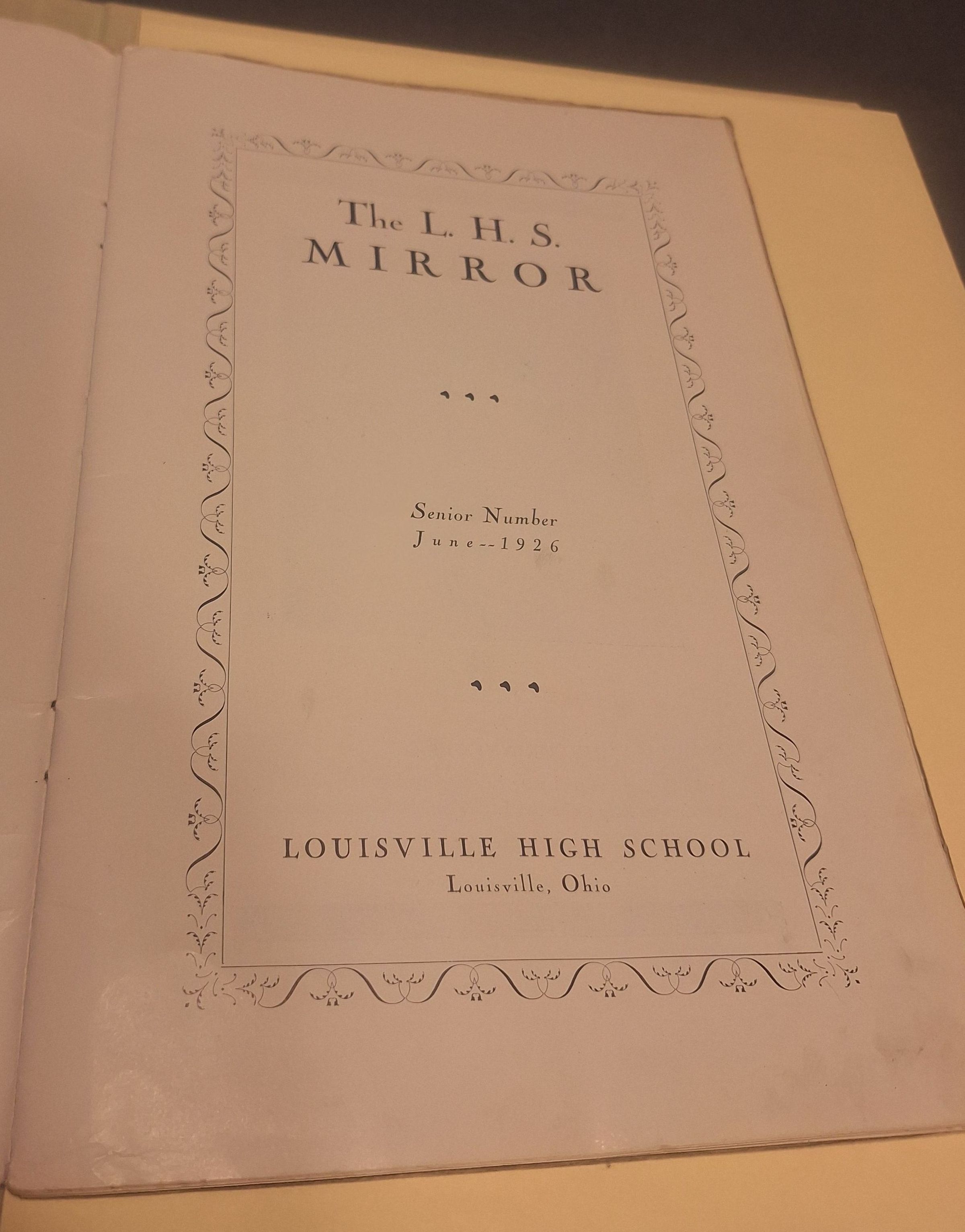 The 1926 Louisville High School Mirror, Senior Number. It details the class of 1926.
