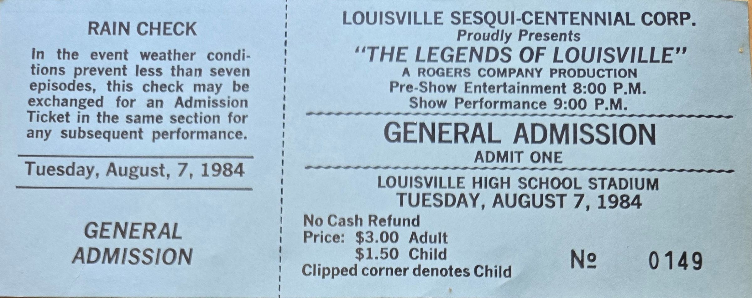 "The Legends of Louisville" 1984 general admission ticket