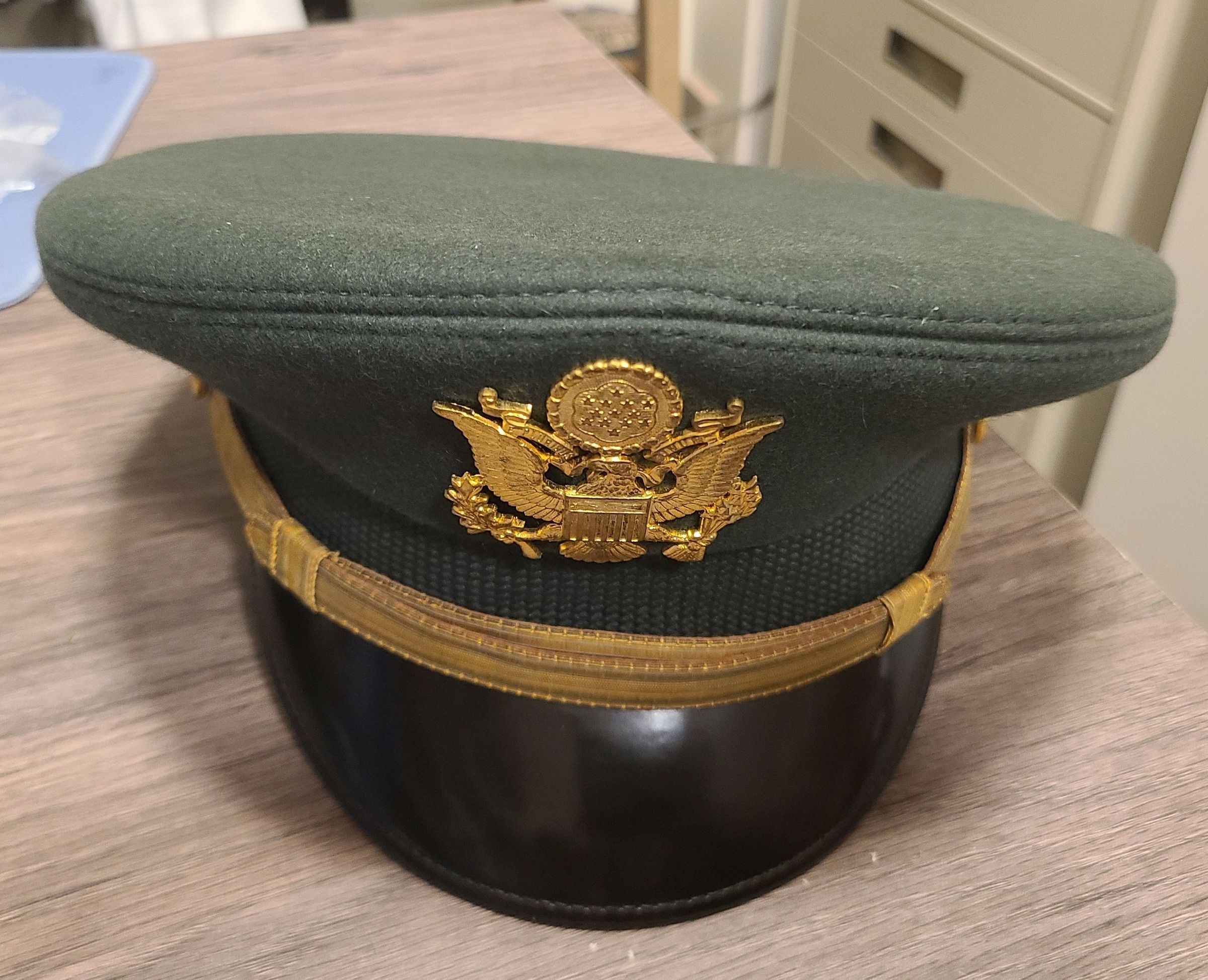 Green officer cap with a black visor and gold details, including a Golden Army Emblem.