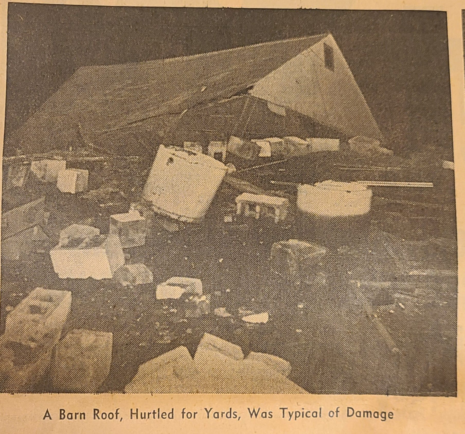 Newspaper articles and pictures from The Canton Repository describing the Nov. 17, 1965, describing the unexpected early morning tornado that took two lives, injured others, and destroyed property in Louisville.
