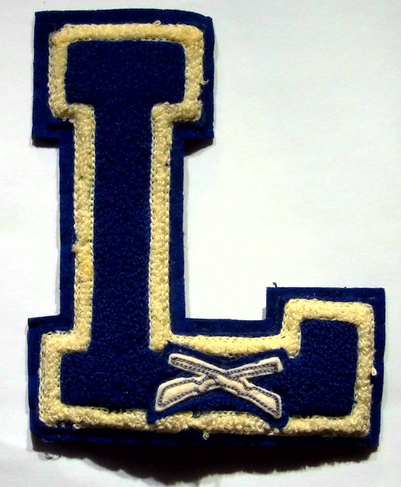 5 1/4" x 4 1/4" Varsity "L" blue/white patch