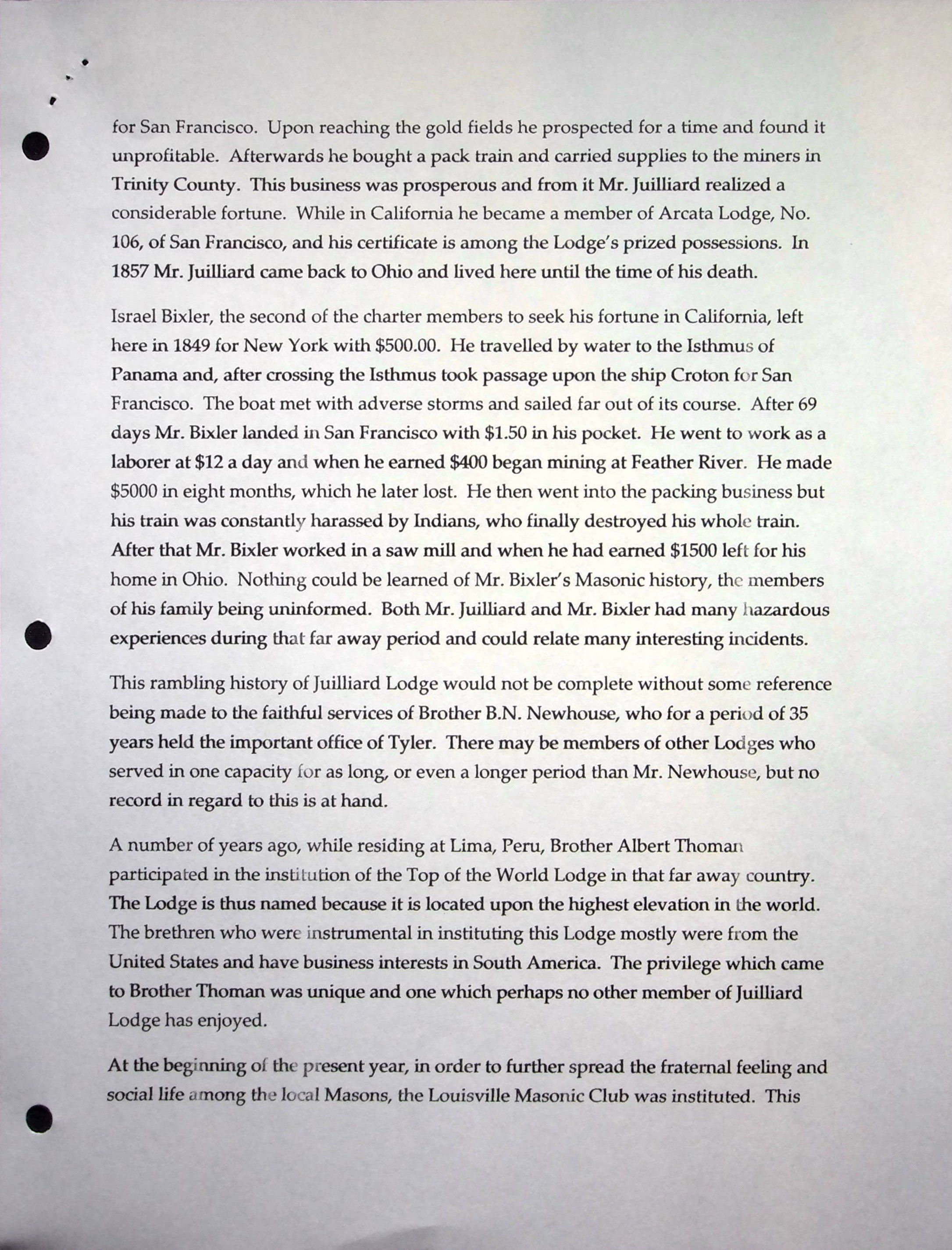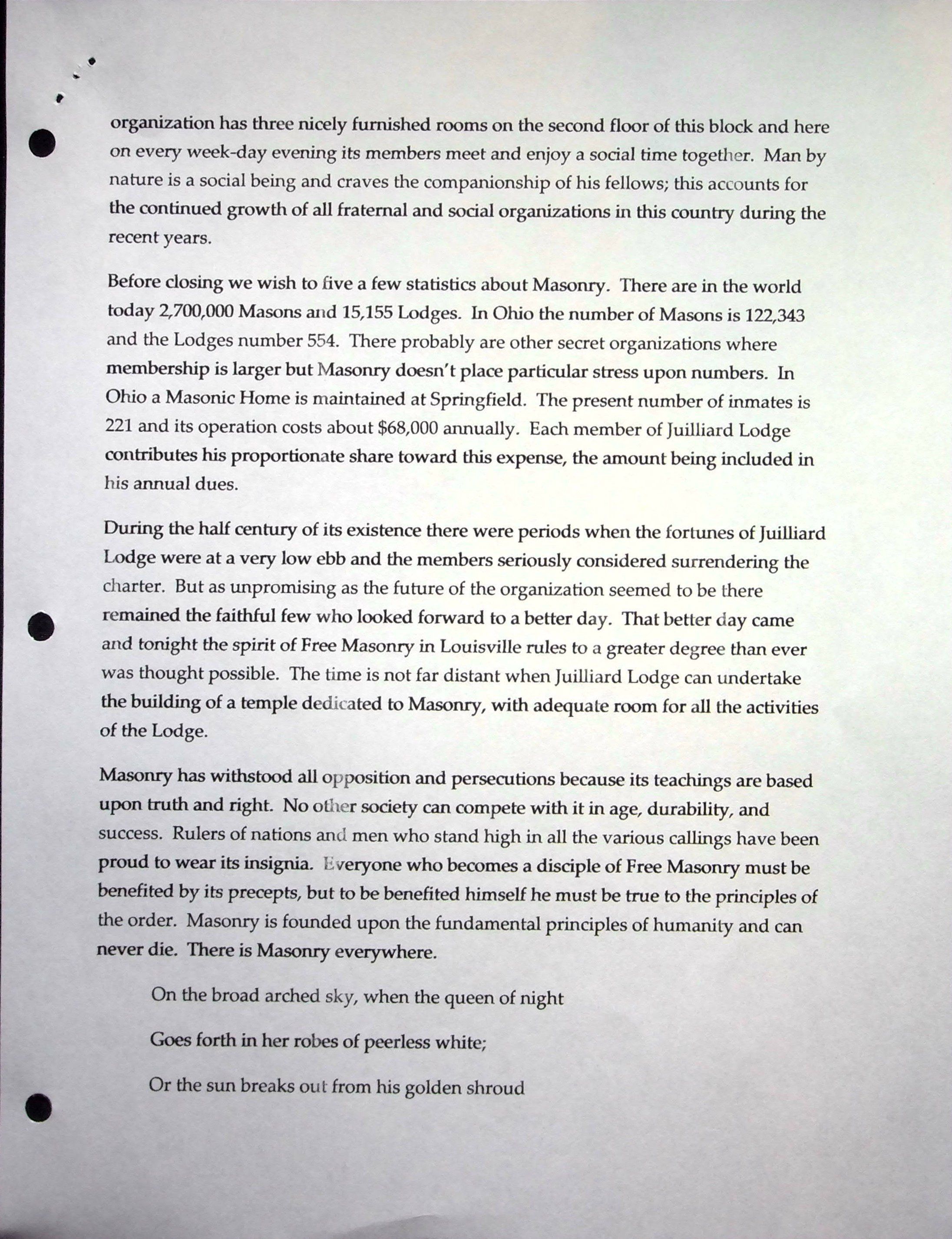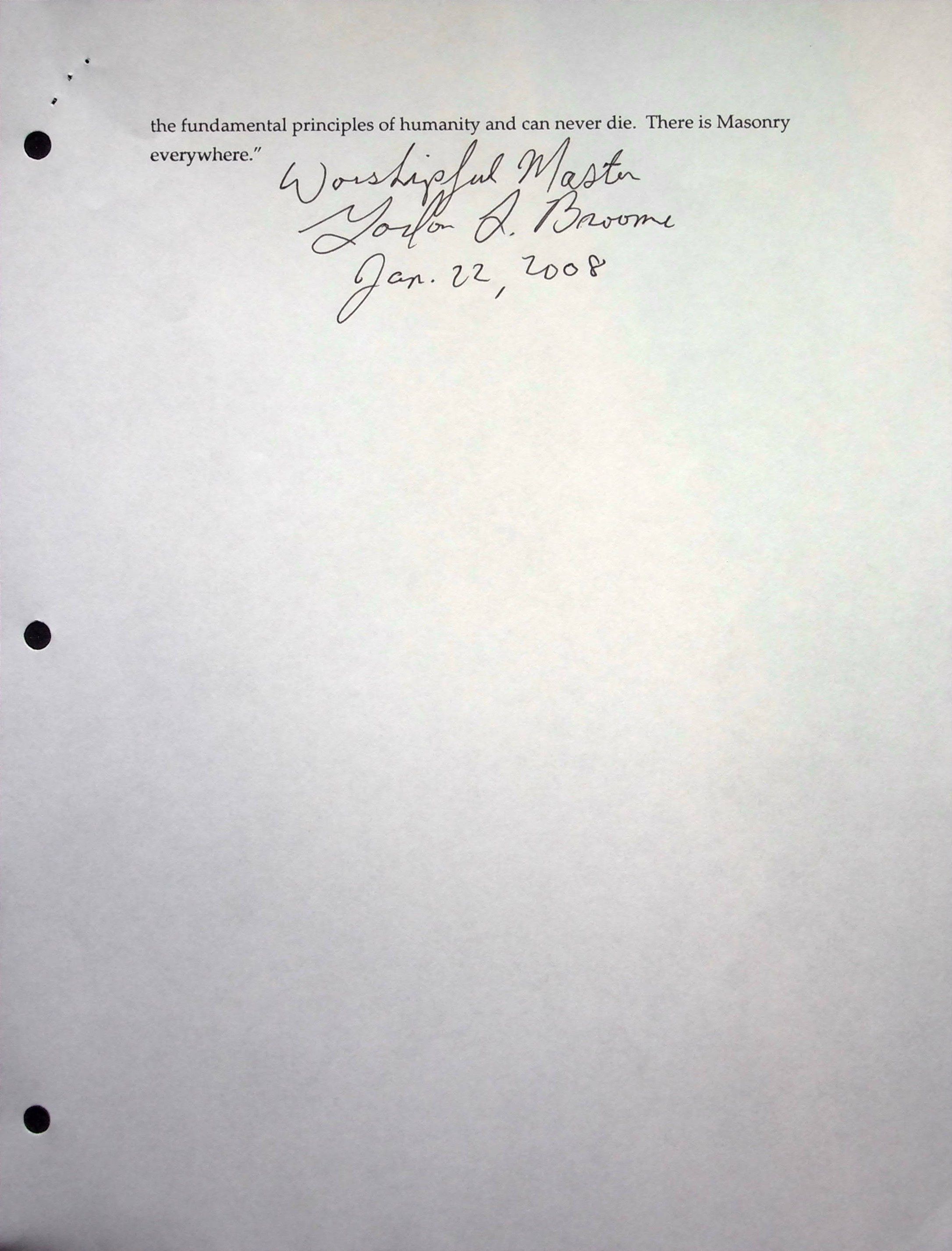 Black notebook with 17 pages of Louisville Masonic history up through 2008 compiled by Gordan Broome.