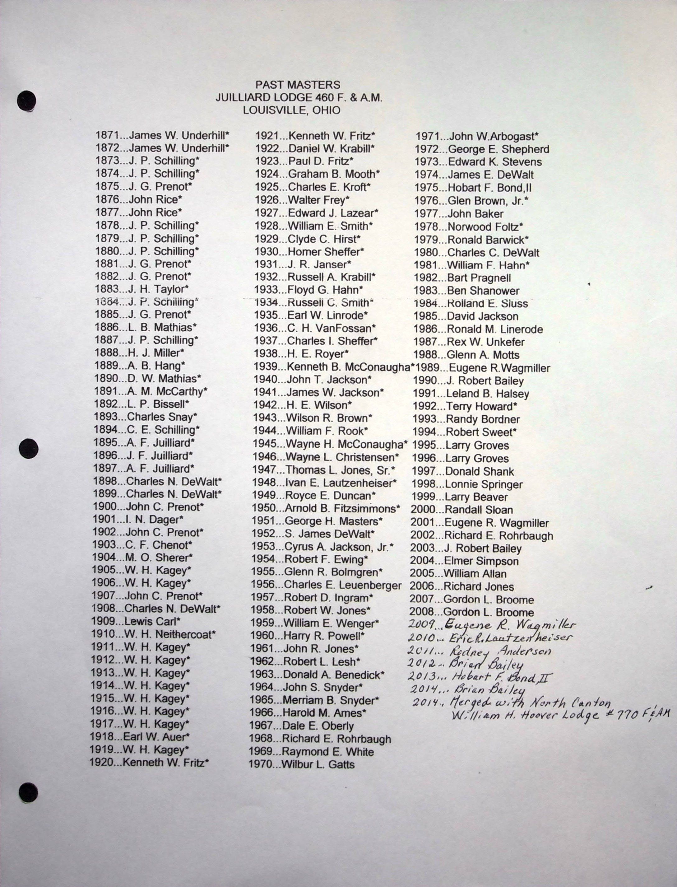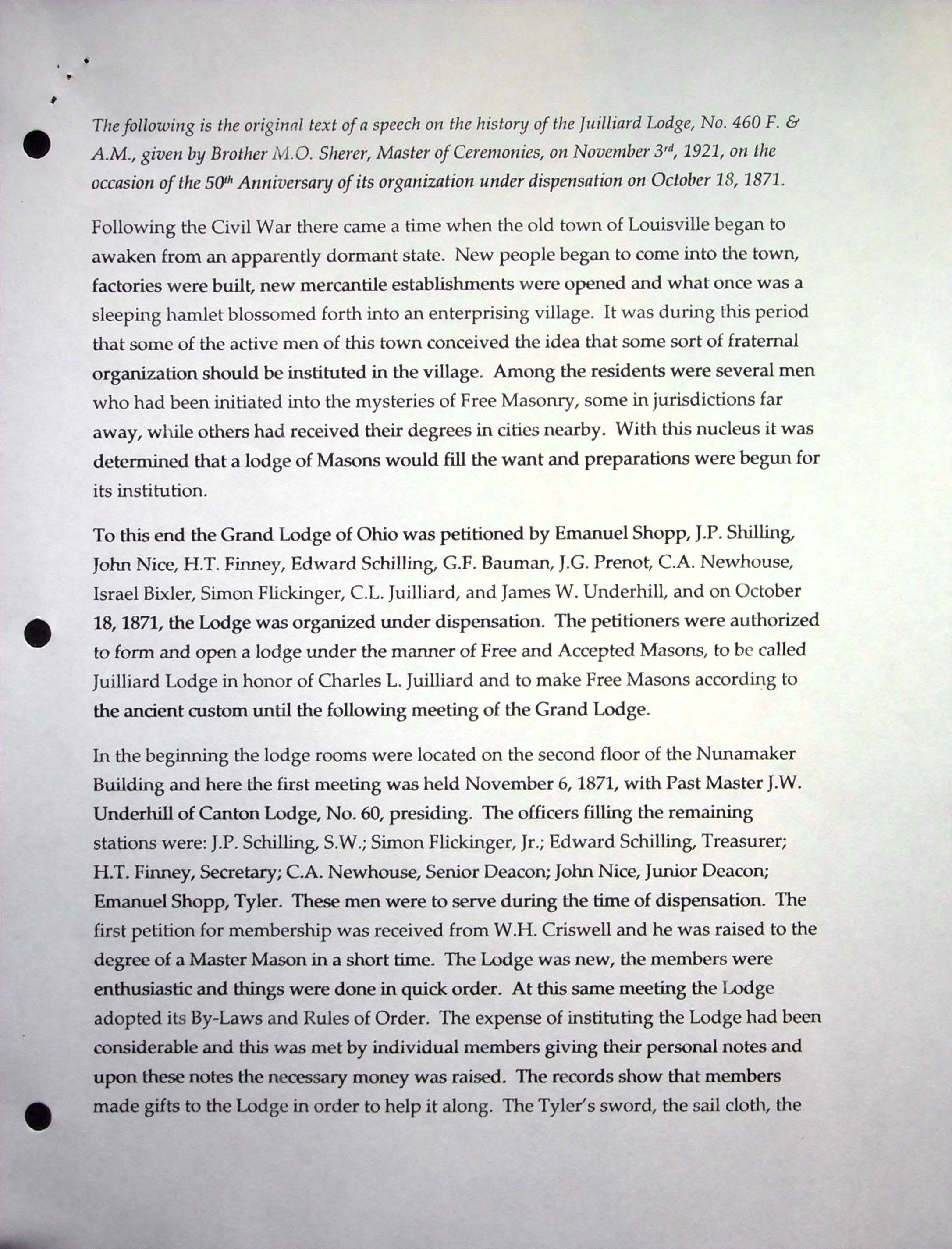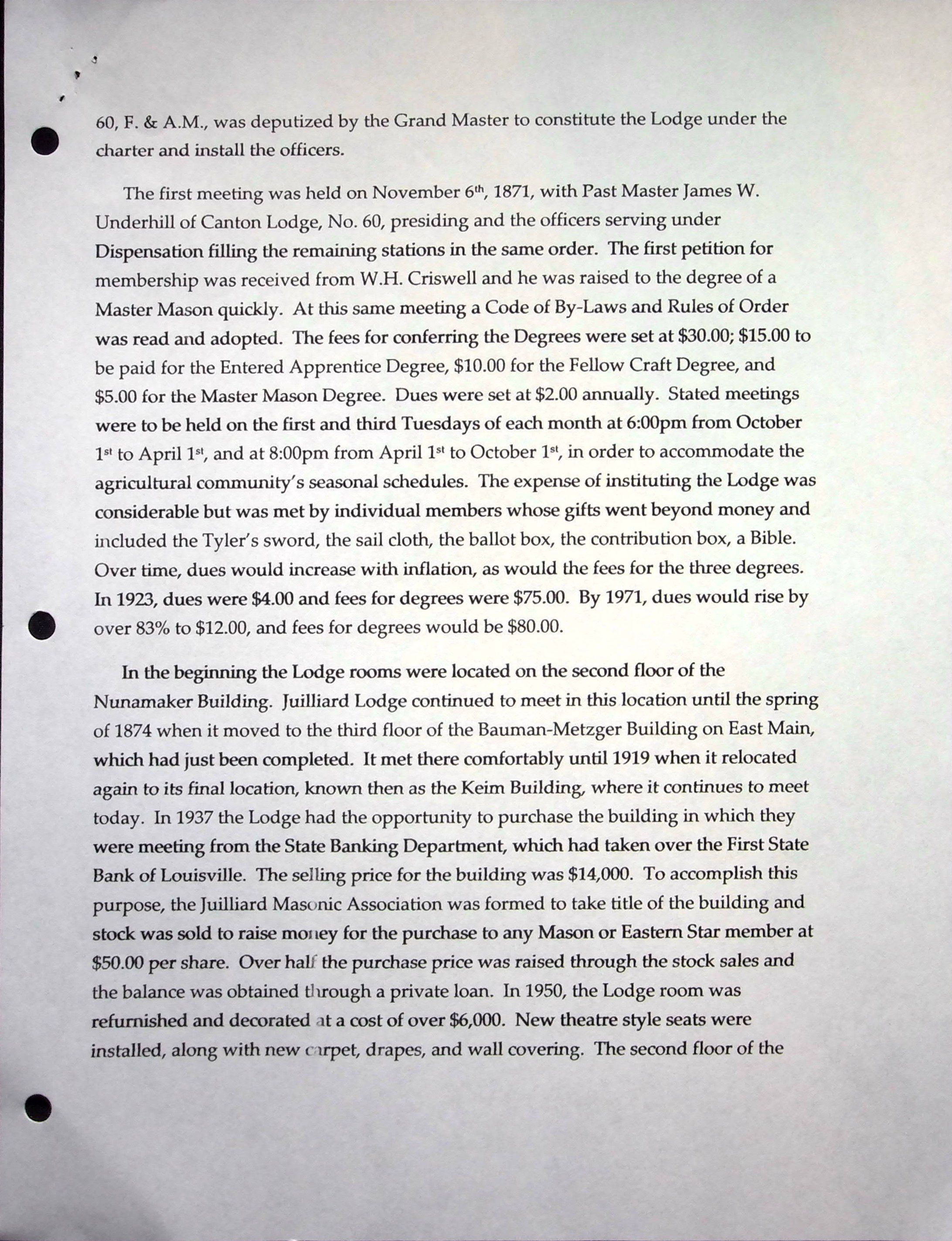 Black notebook with 17 pages of Louisville Masonic history up through 2008 compiled by Gordan Broome.