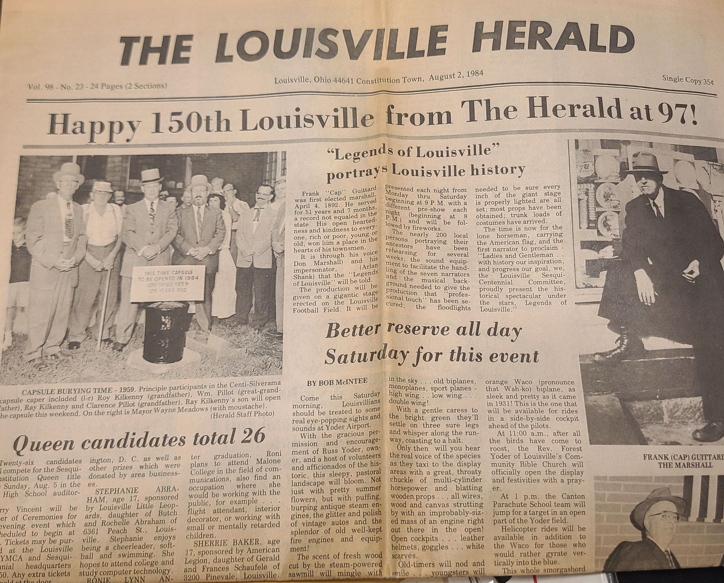 Louisville Herald Newspaper wishing louisville a 150th Birthday, in 1984, August 2nd.