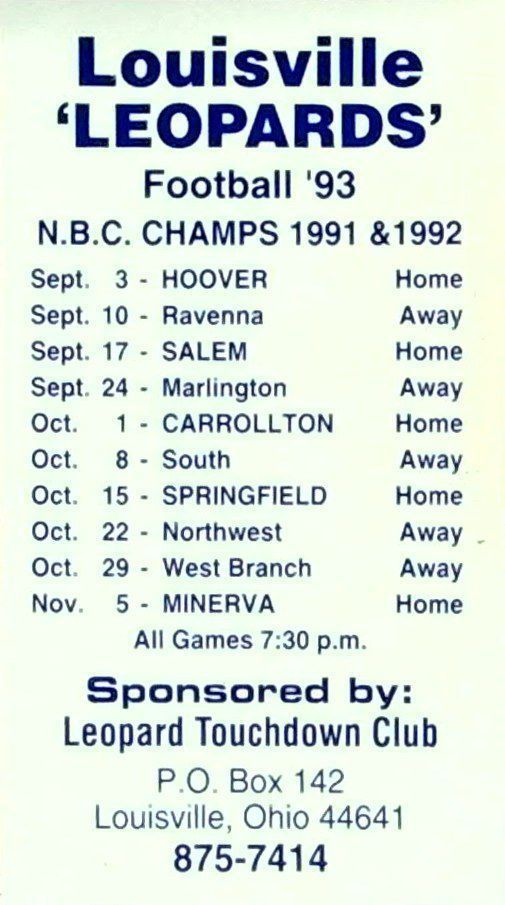 1993 Leopard Football schedule magnet