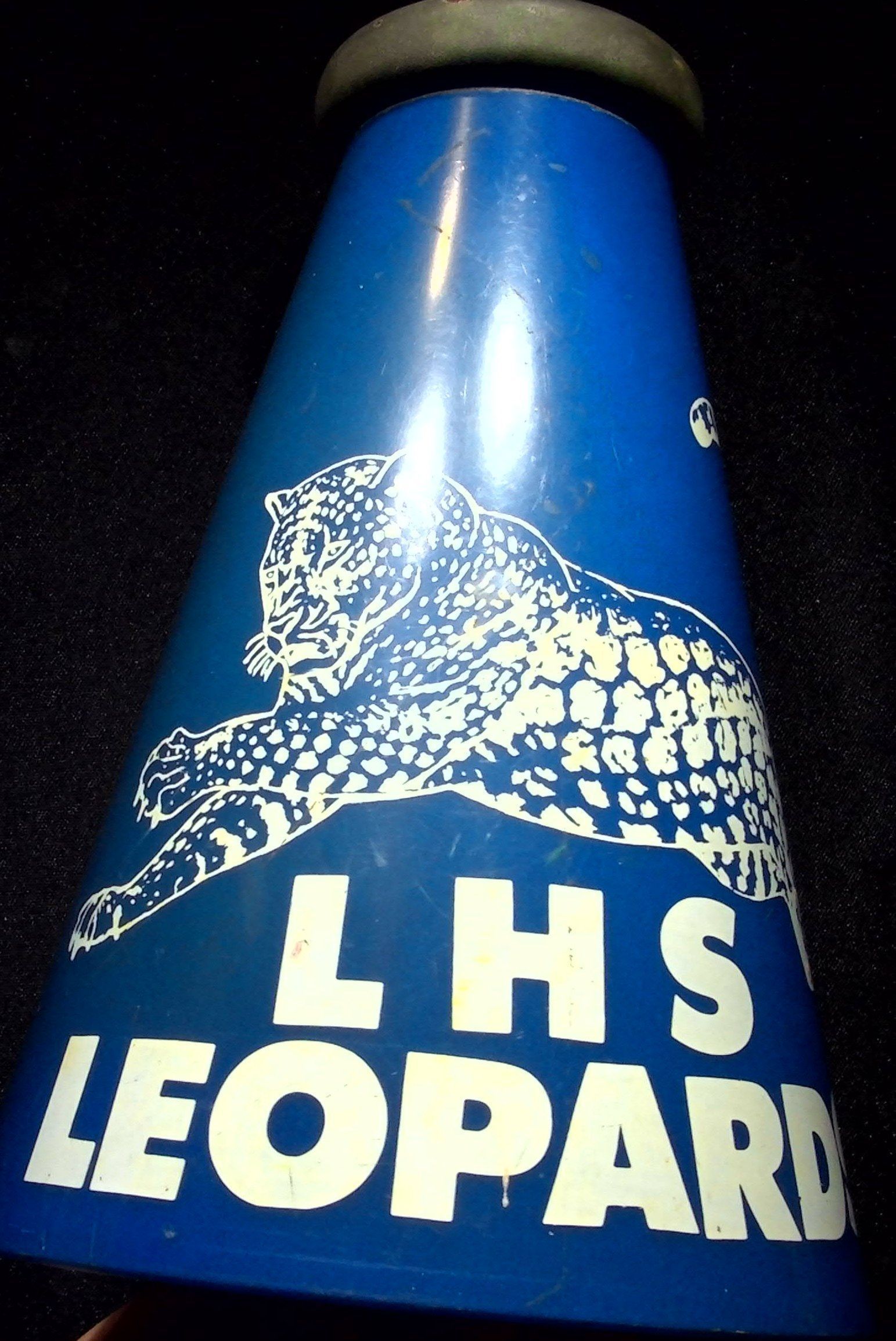 7 1/2" height- LHS Leopards Megaphone, with white leopard and blue background.