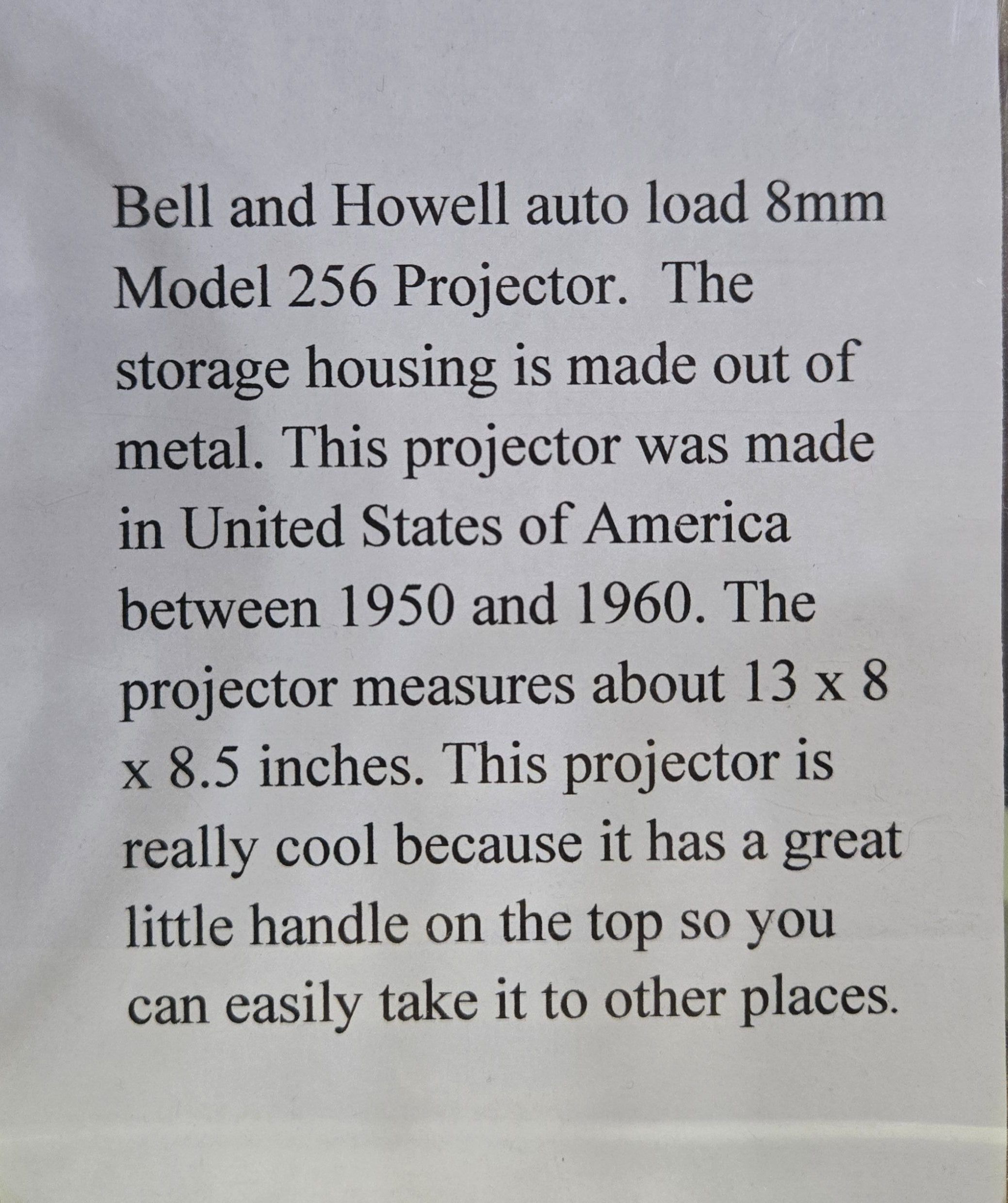 Bell & Howell model 256 portable movie projector