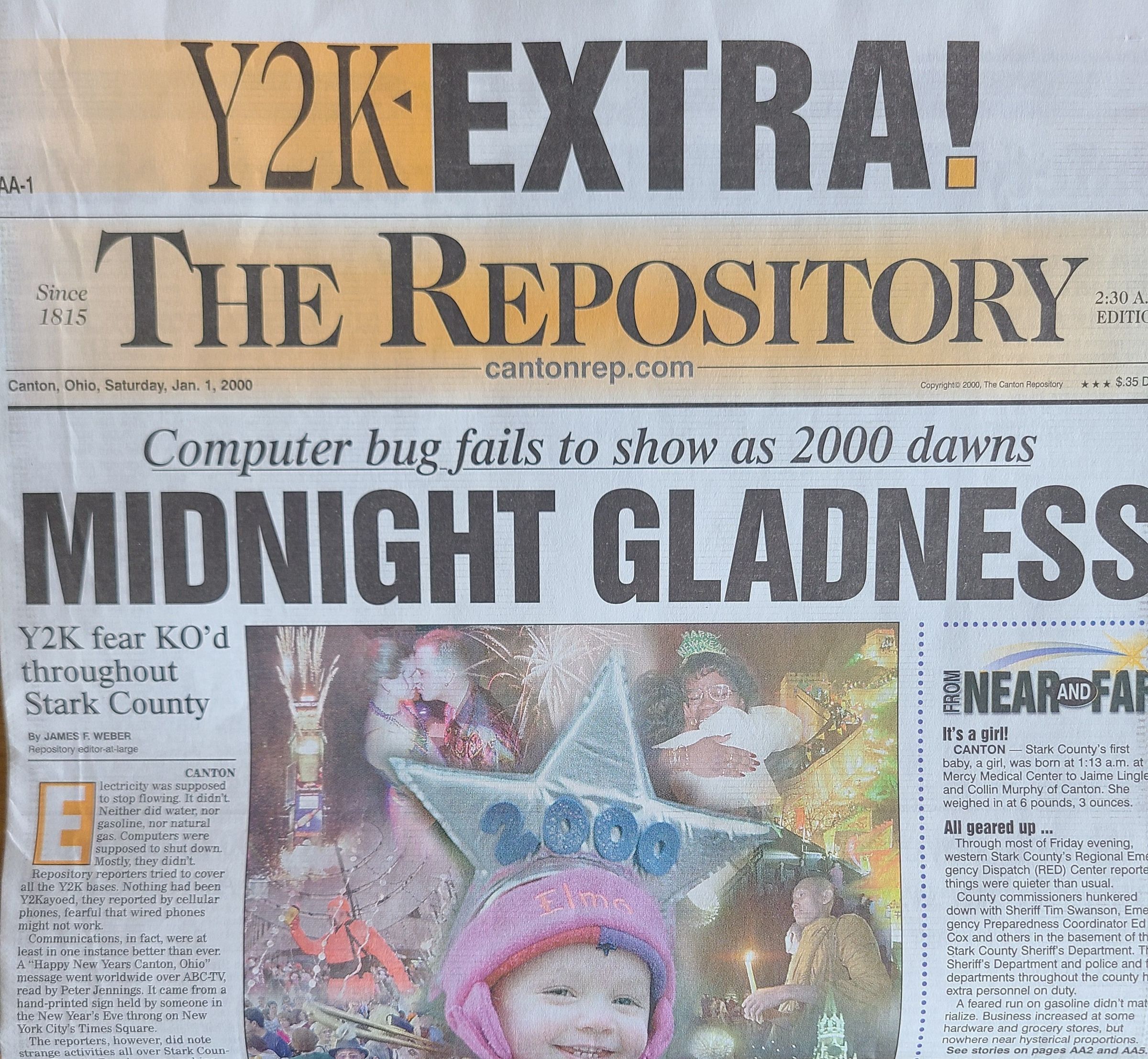 This Canton Repository is from the year 2000, dismissing the popular Y2K concerns. The newspaper reassured people that the feared computer bug did not occur.