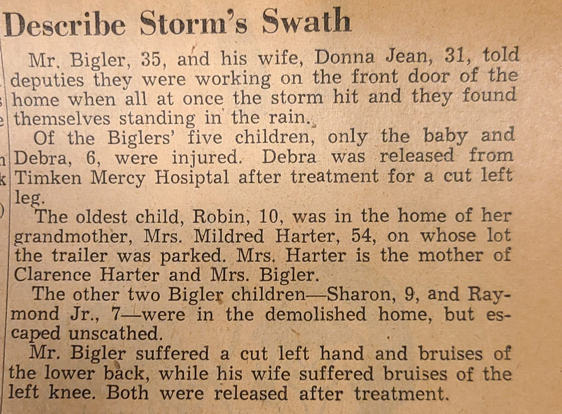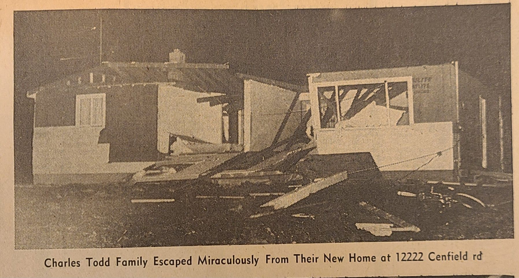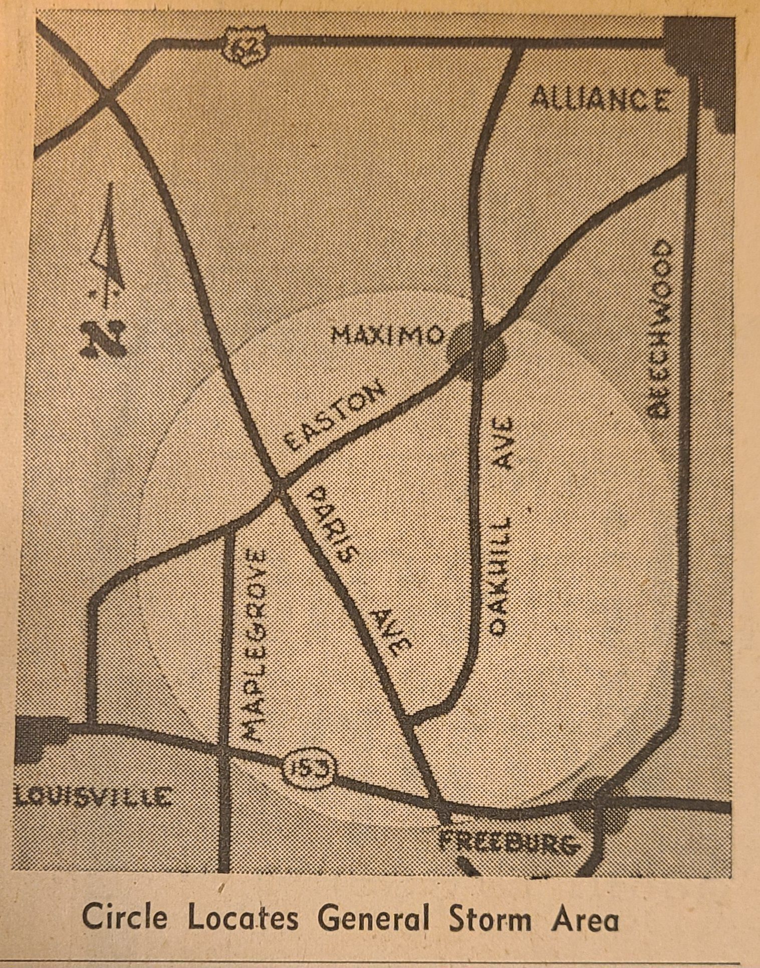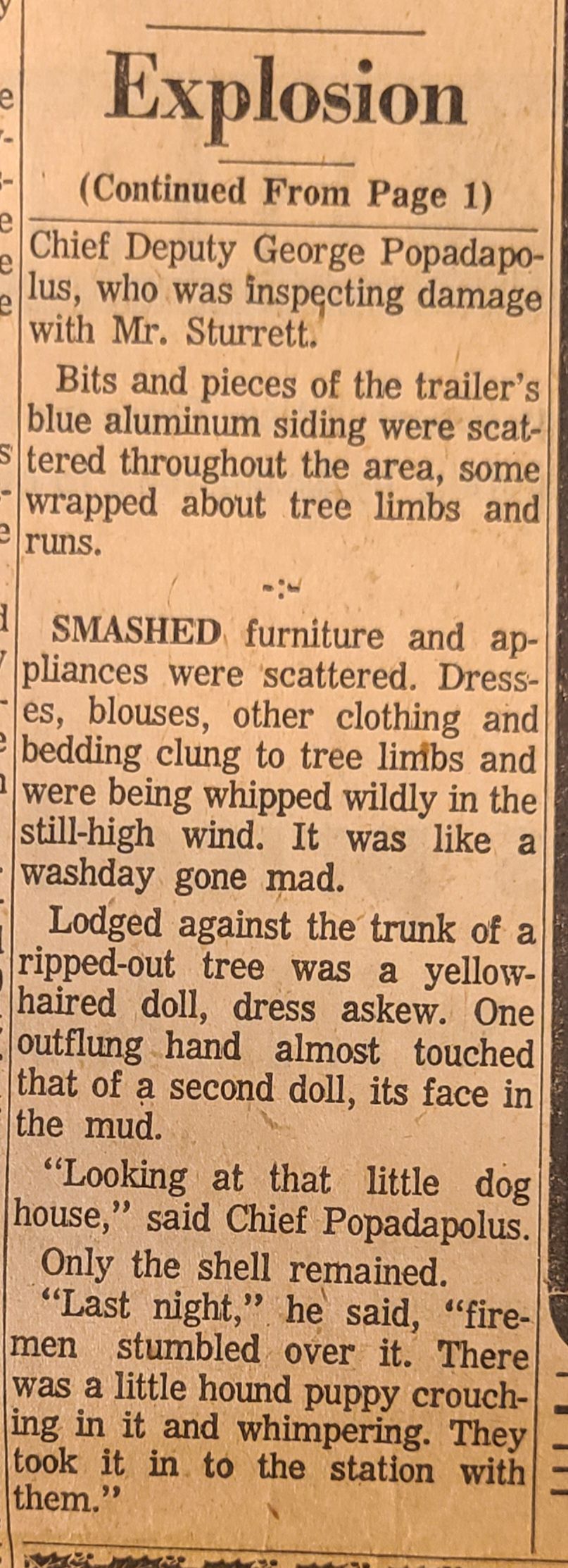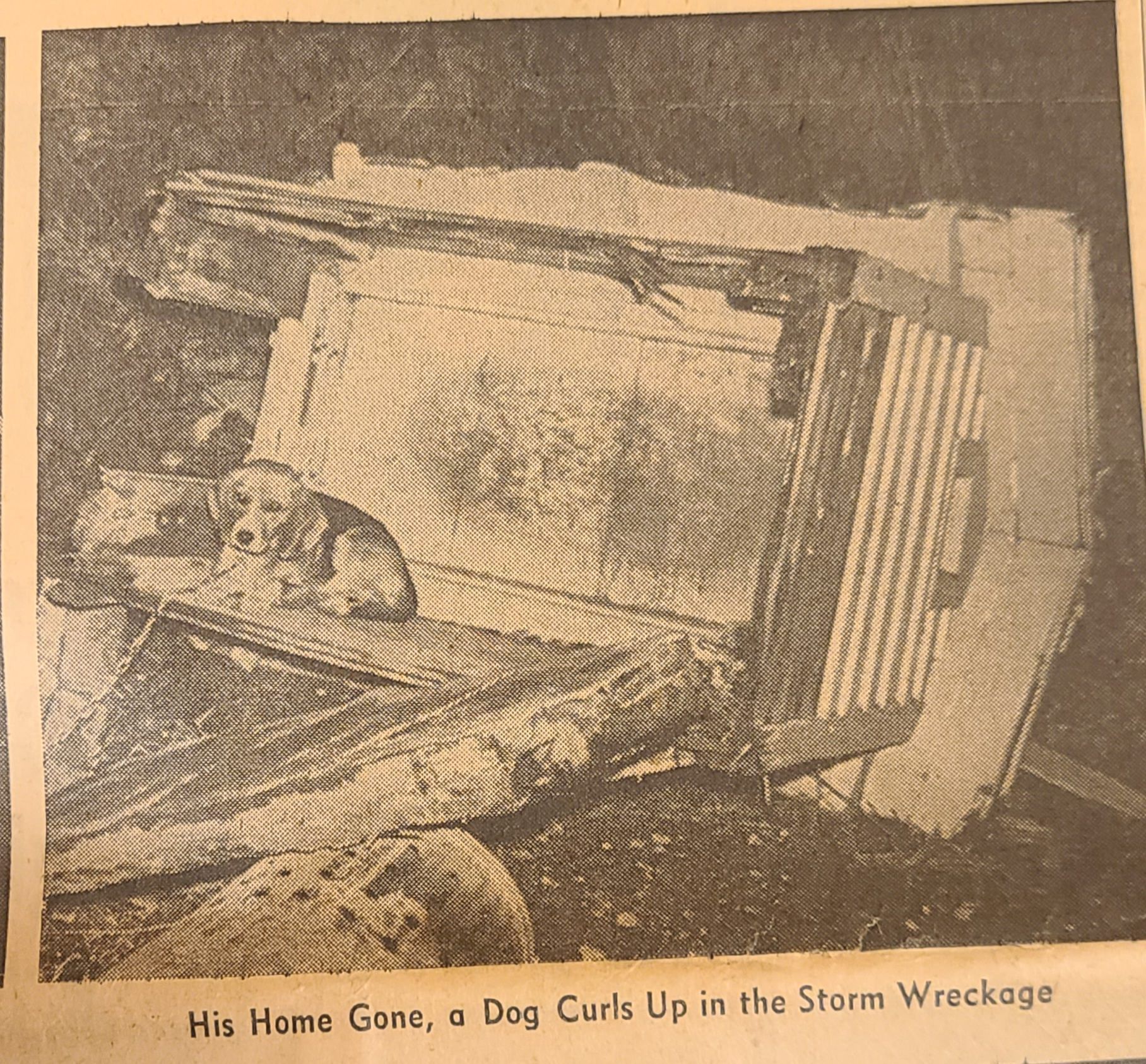 Newspaper articles and pictures from The Canton Repository describing the Nov. 17, 1965, describing the unexpected early morning tornado that took two lives, injured others, and destroyed property in Louisville.