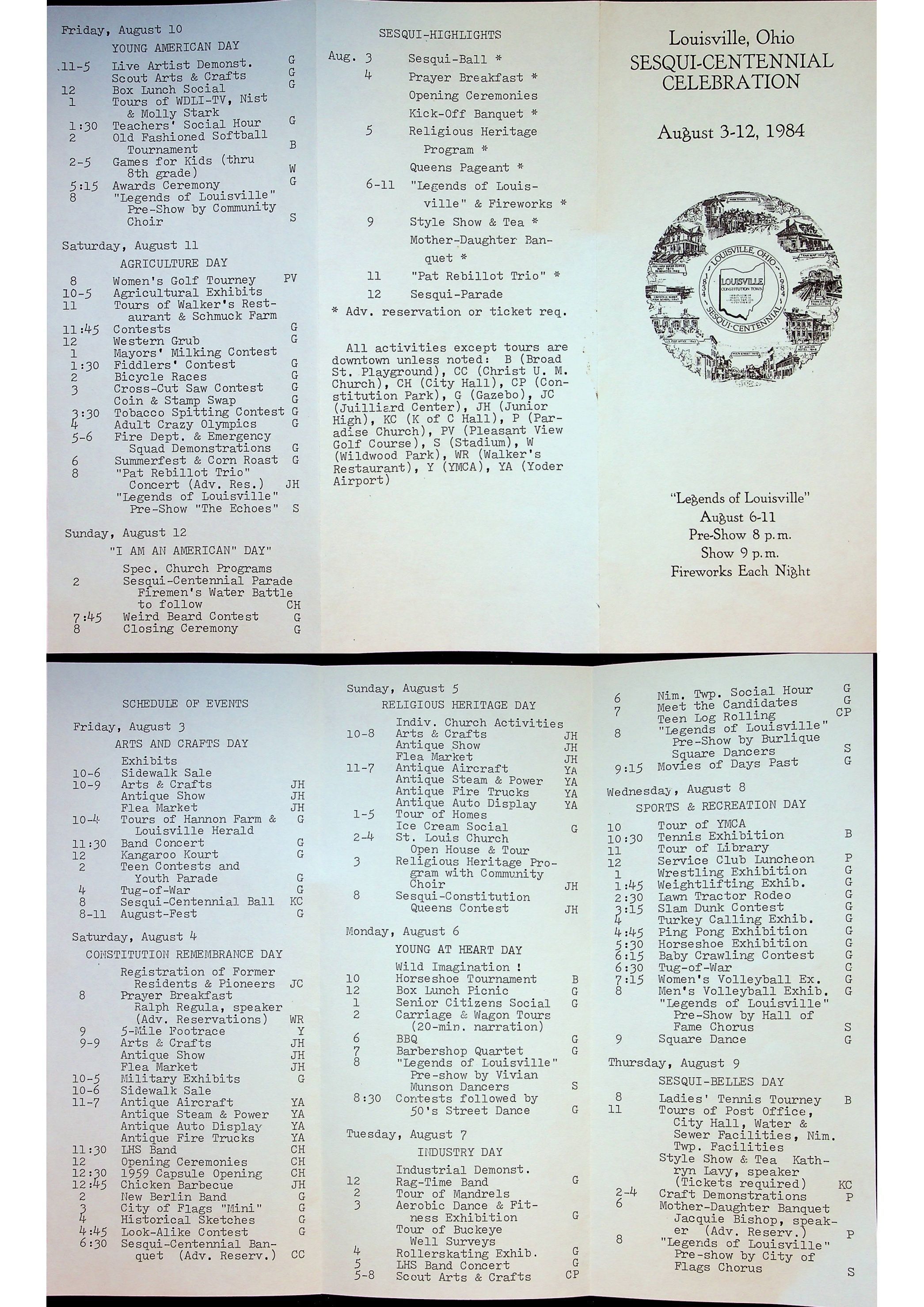 A pamphlet showcasing the legends of Louisville at the Sequi-centennial Celebration, August 3-12, 1984.