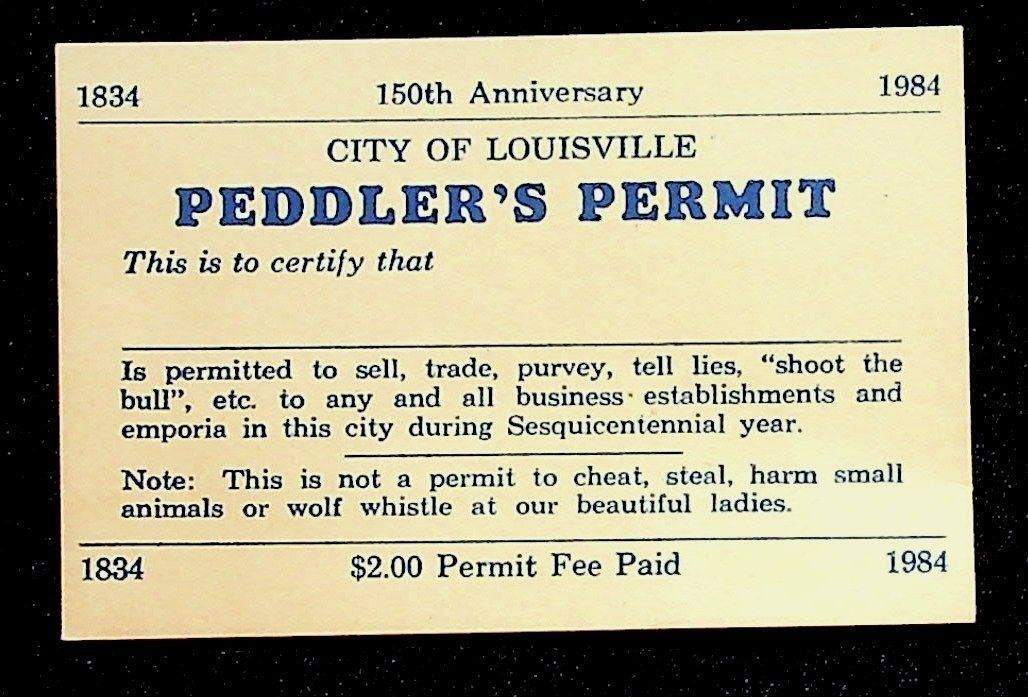 1984 Peddler's Permit given during the Sesqui-Centennial celebration event allowing you to "shoot the bull".