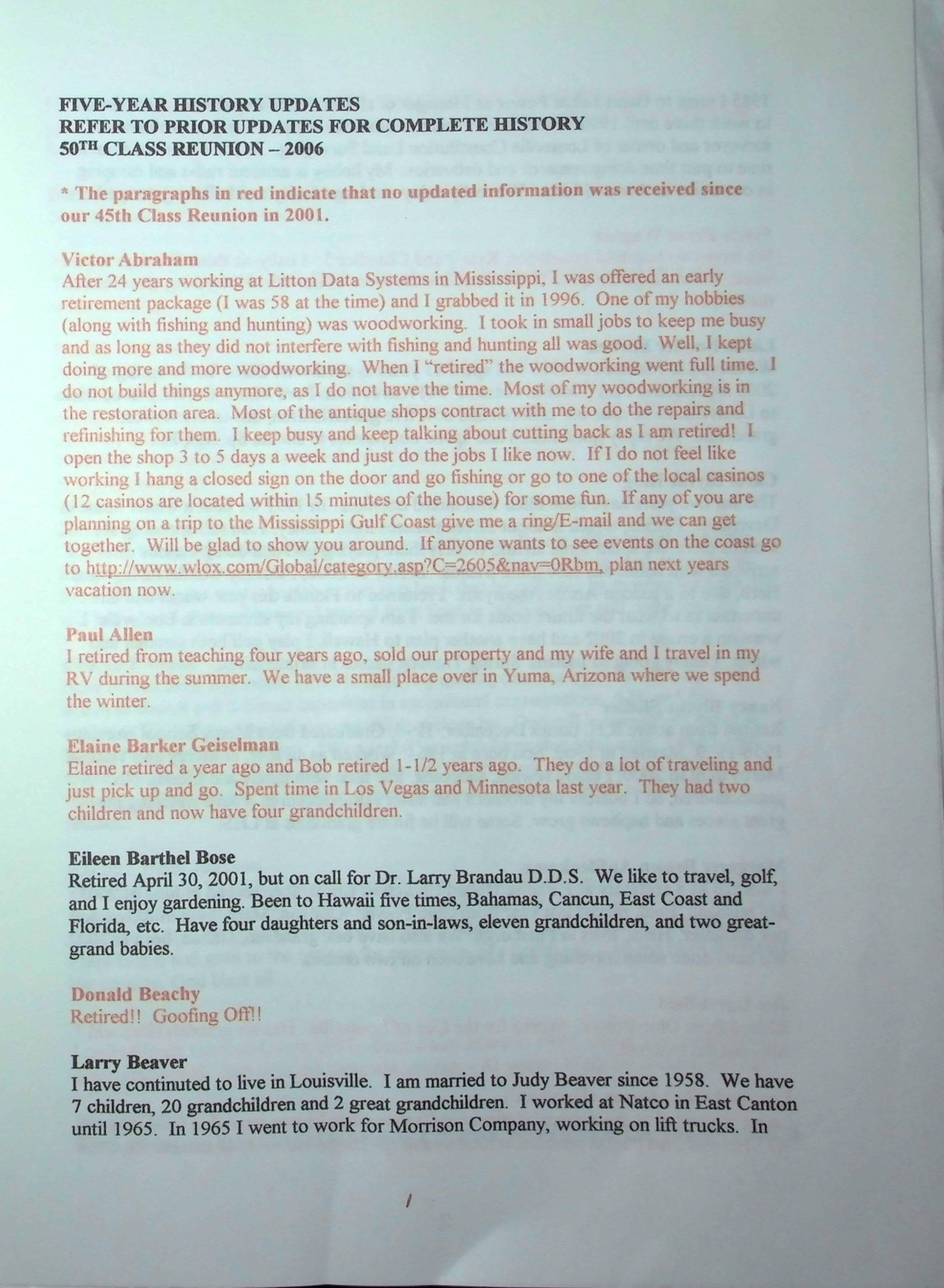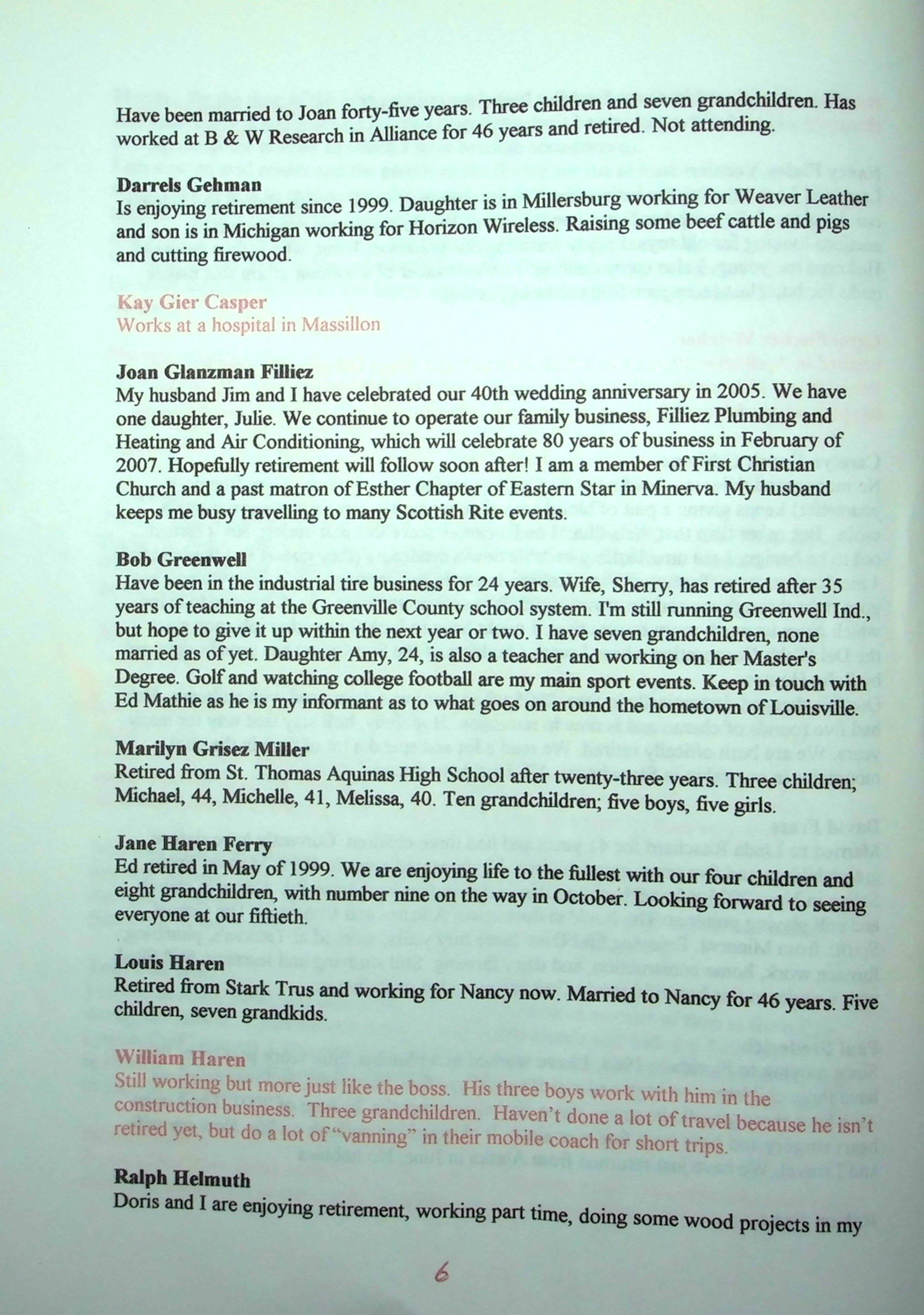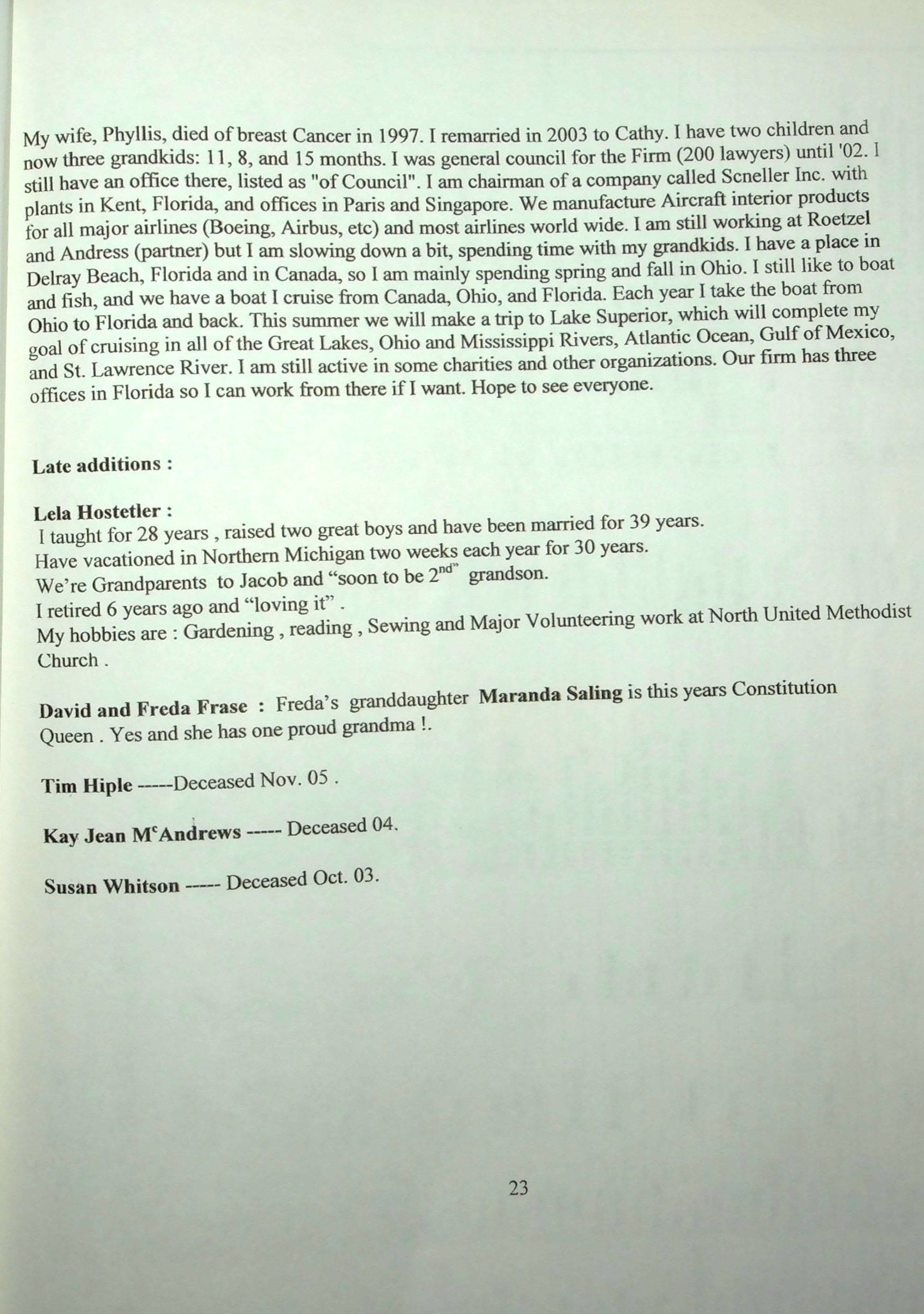 Includes Class Mailing List that was not scanned for public viewing