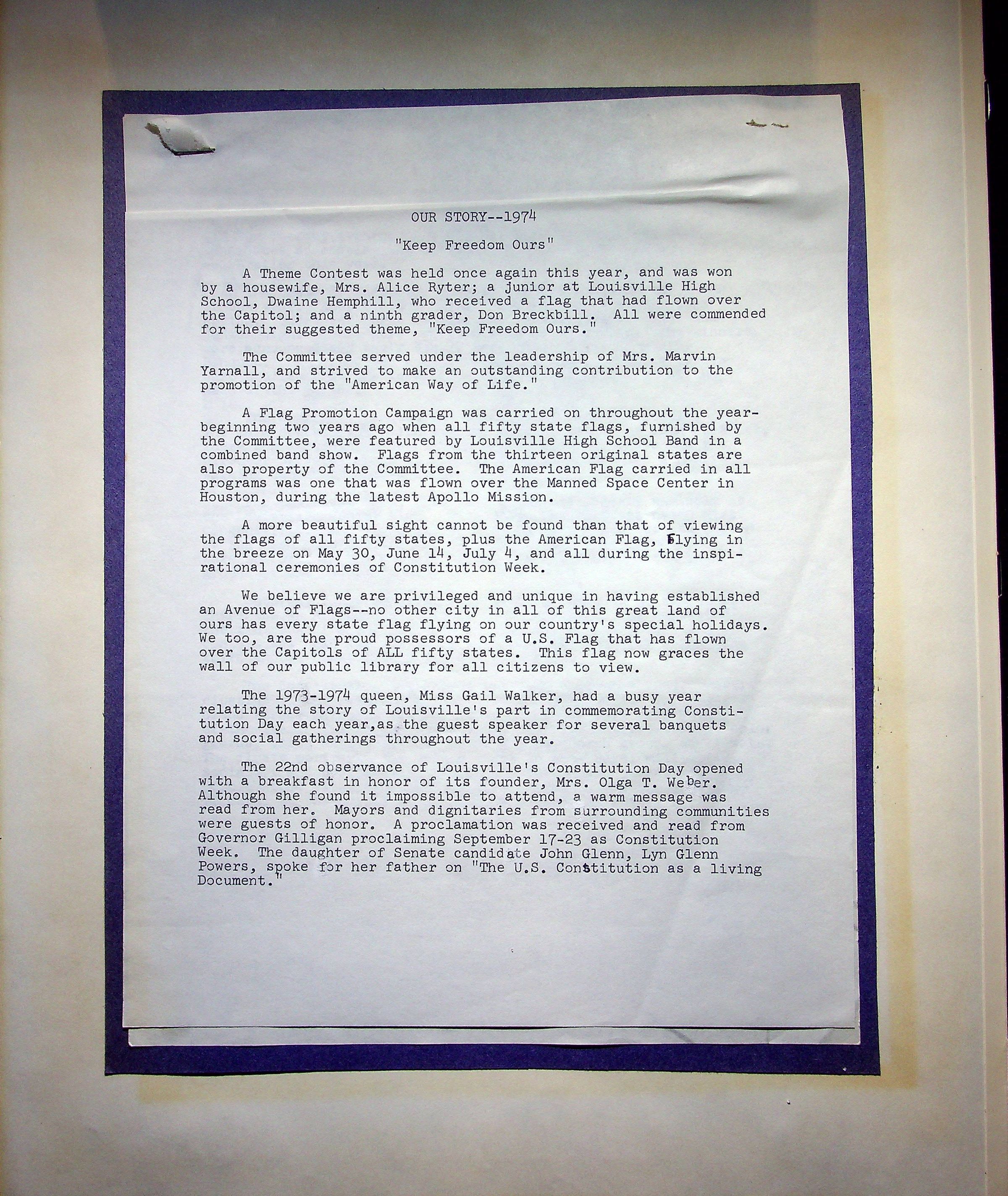 1974 Constitution Day Committee Scrapbook