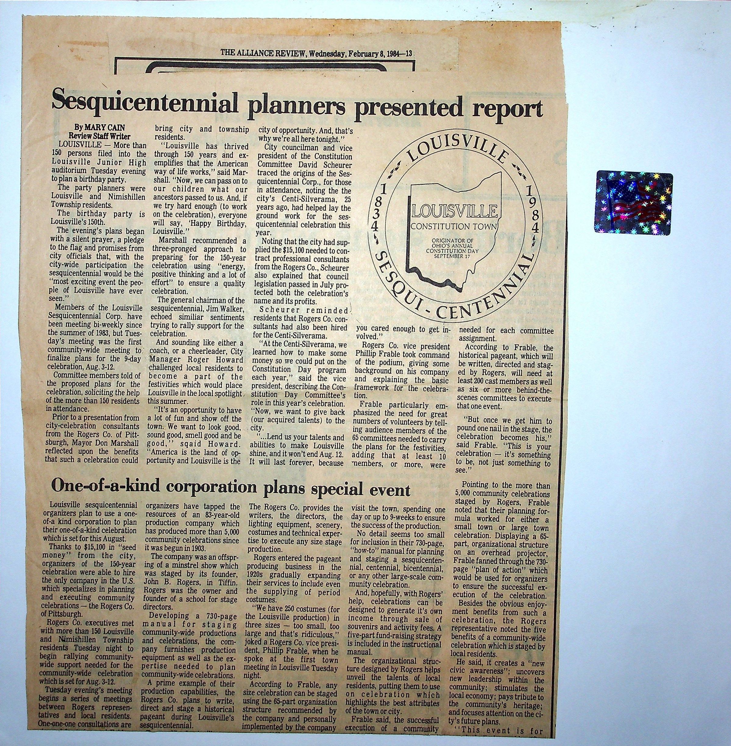 1984 Sesqicentennial Committee scrapbook