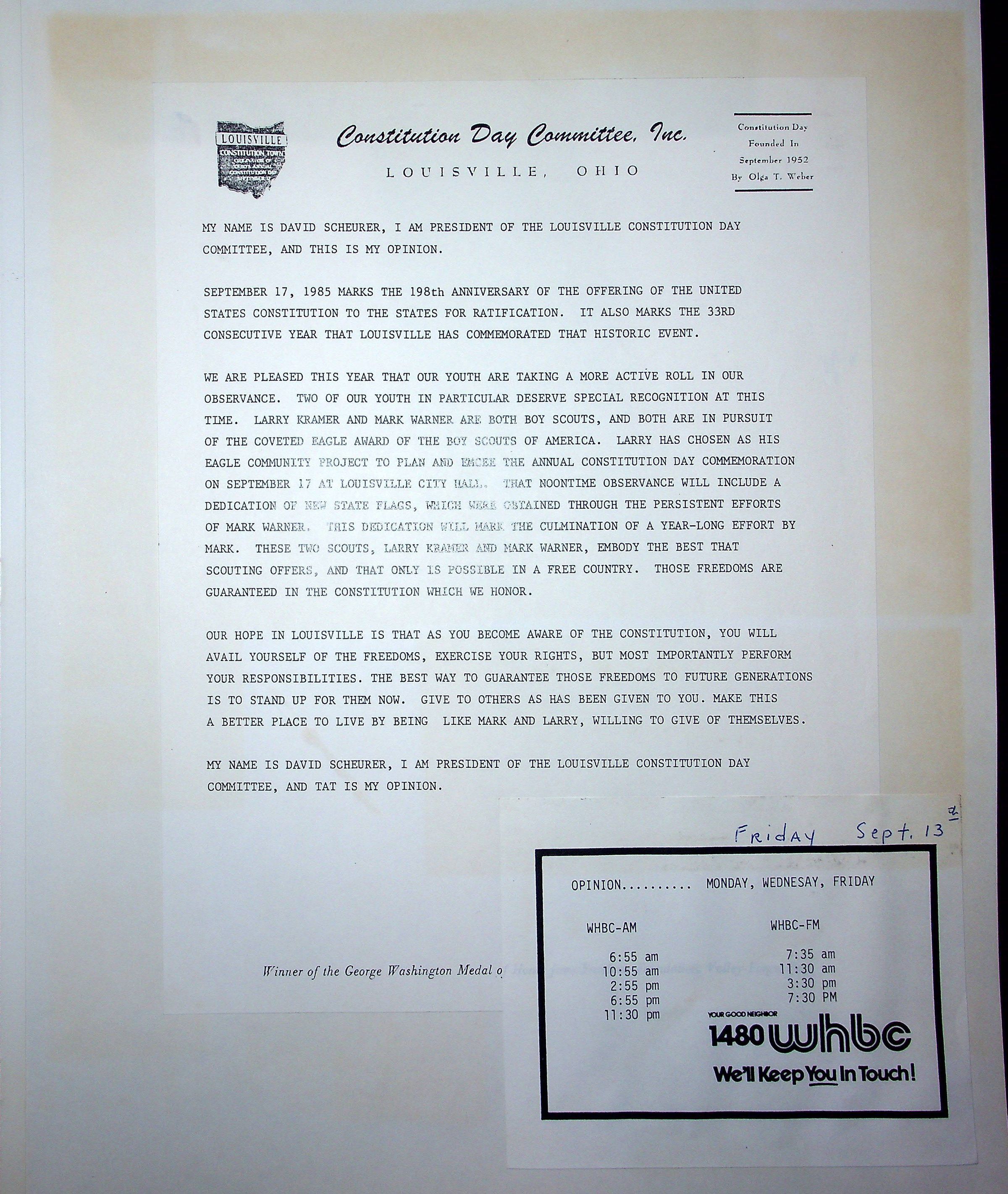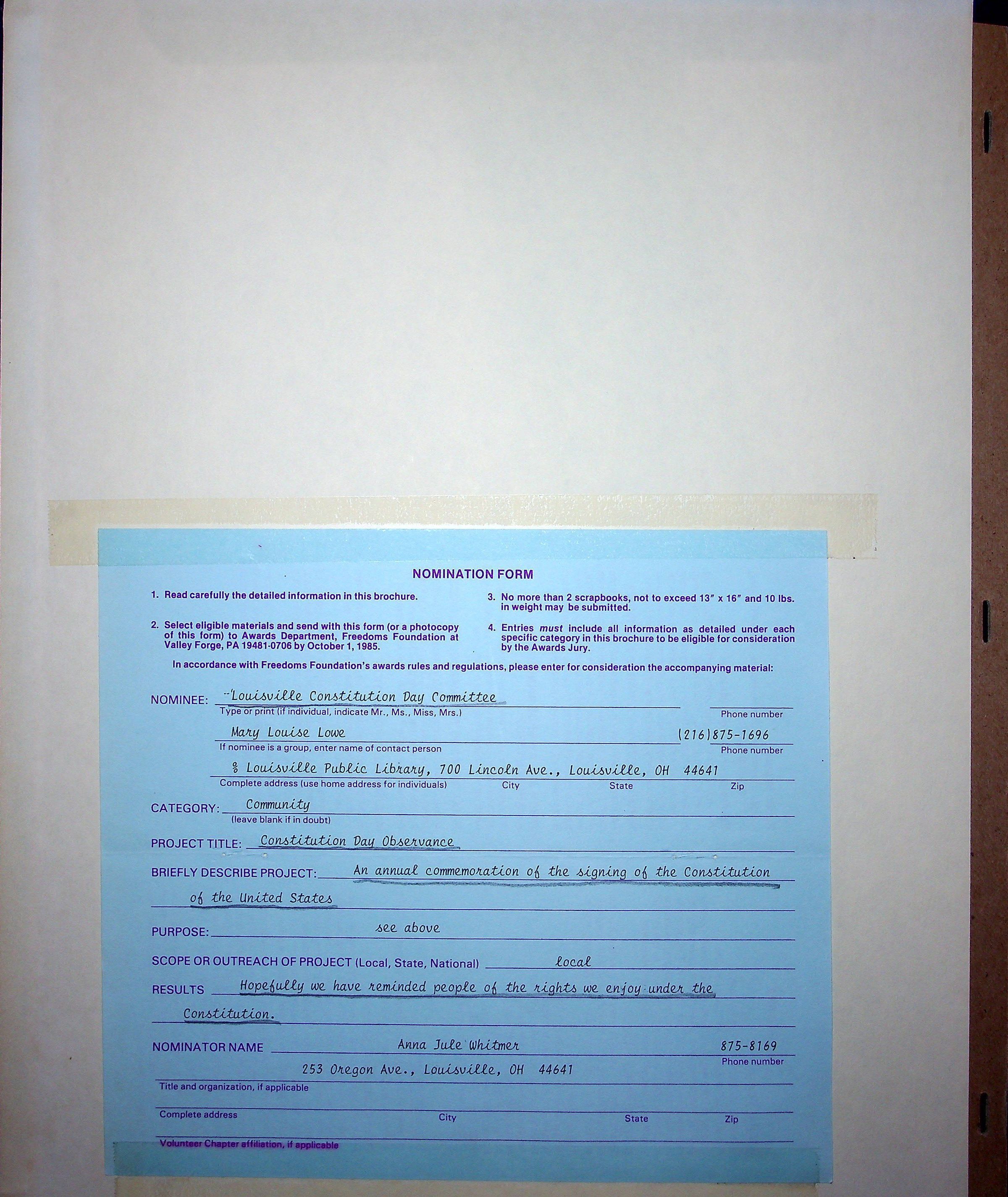 1985 Constitution Day Committee Scrapbook