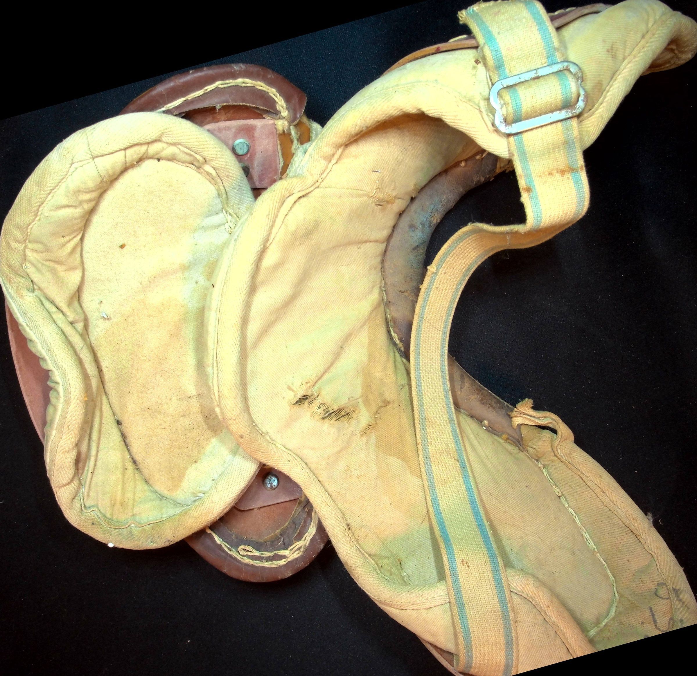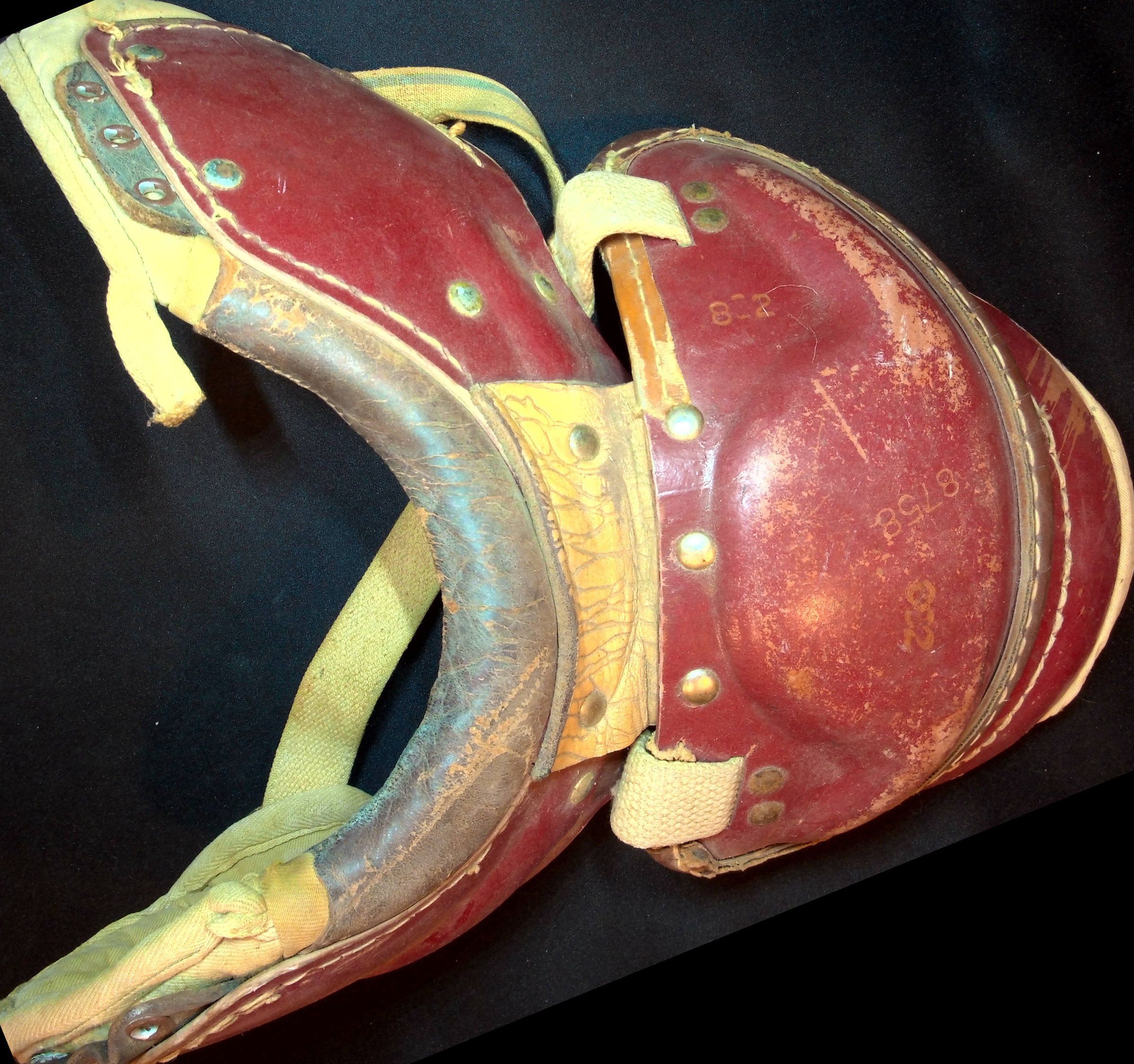 1940-1950's Football Shoulder Pads (two). Unknown maker. Top view. Red/Beige