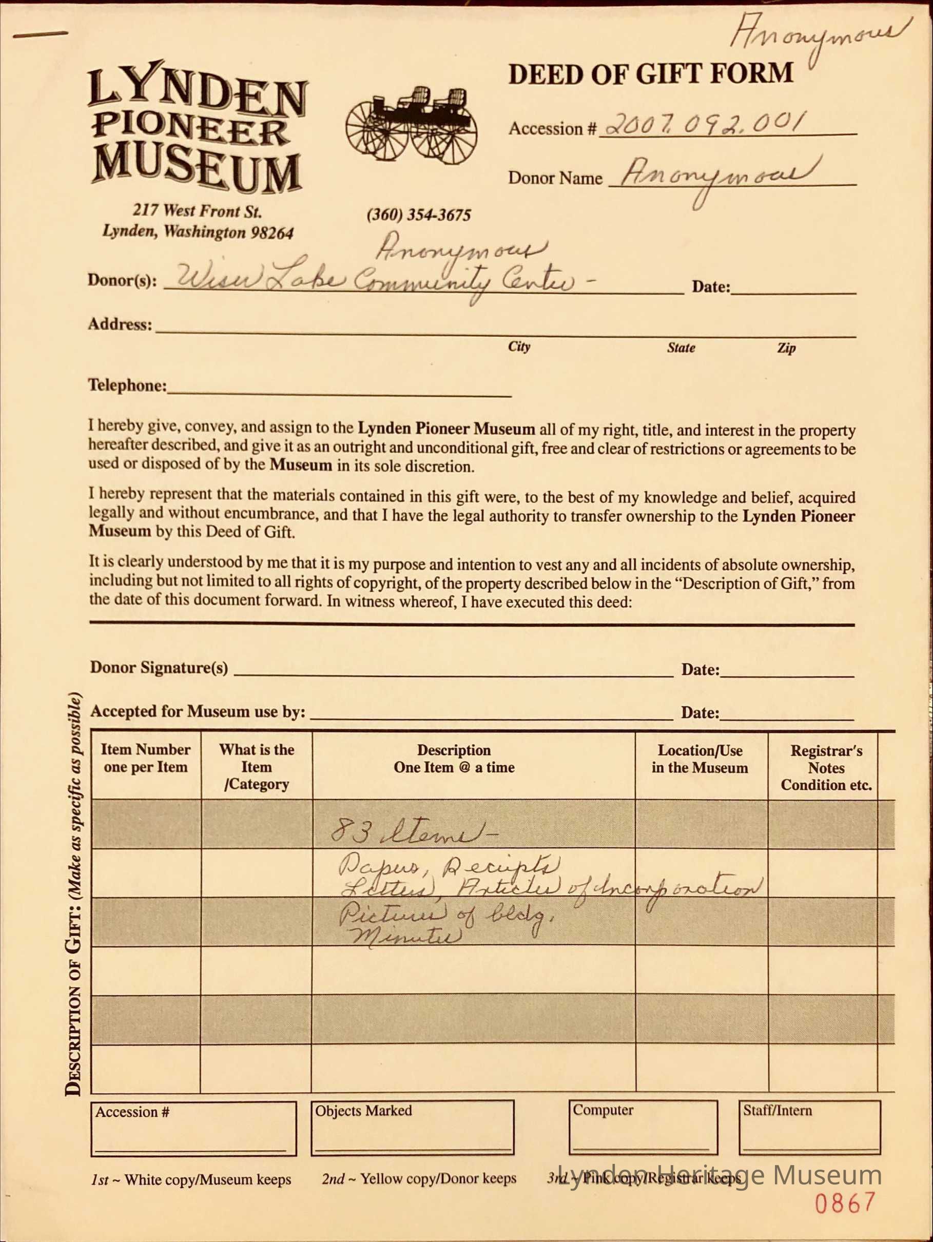 Papers, Receipts, Letters, Articles of Incorporation, Pictures of buildings, minutesCollection
