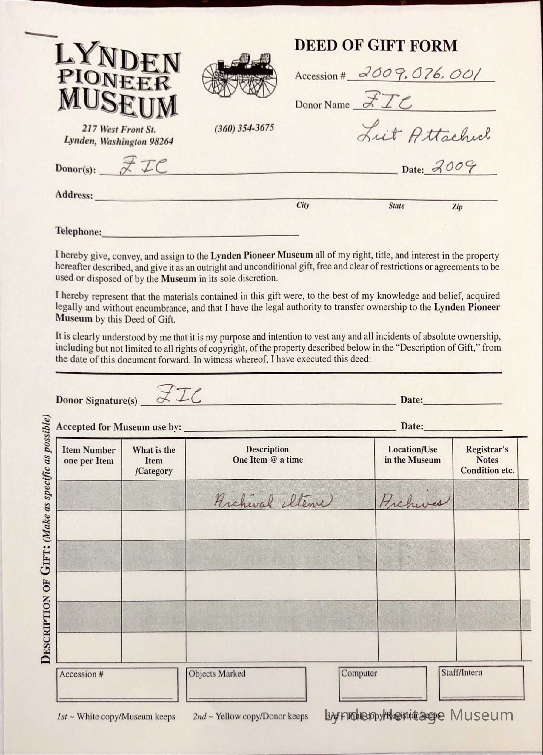 Archival items (list attached)
