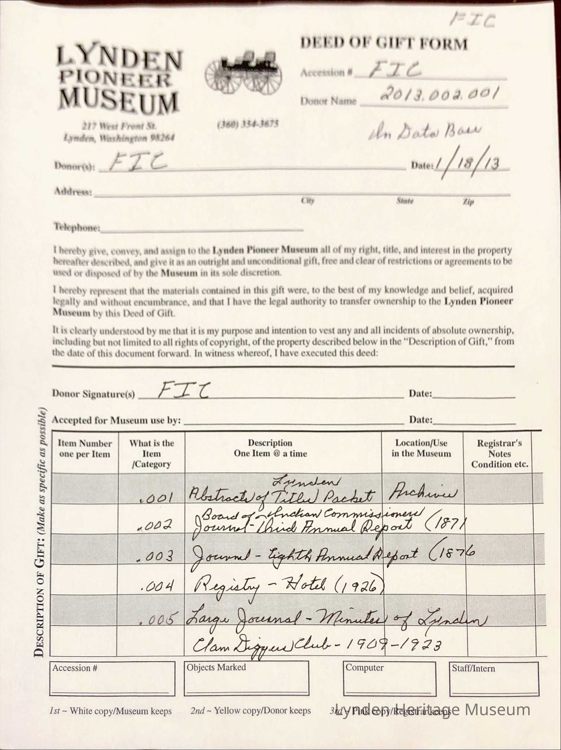 5. Large Journal - Minutes of Lynden Clam Diggers Club (1909-1923)Context