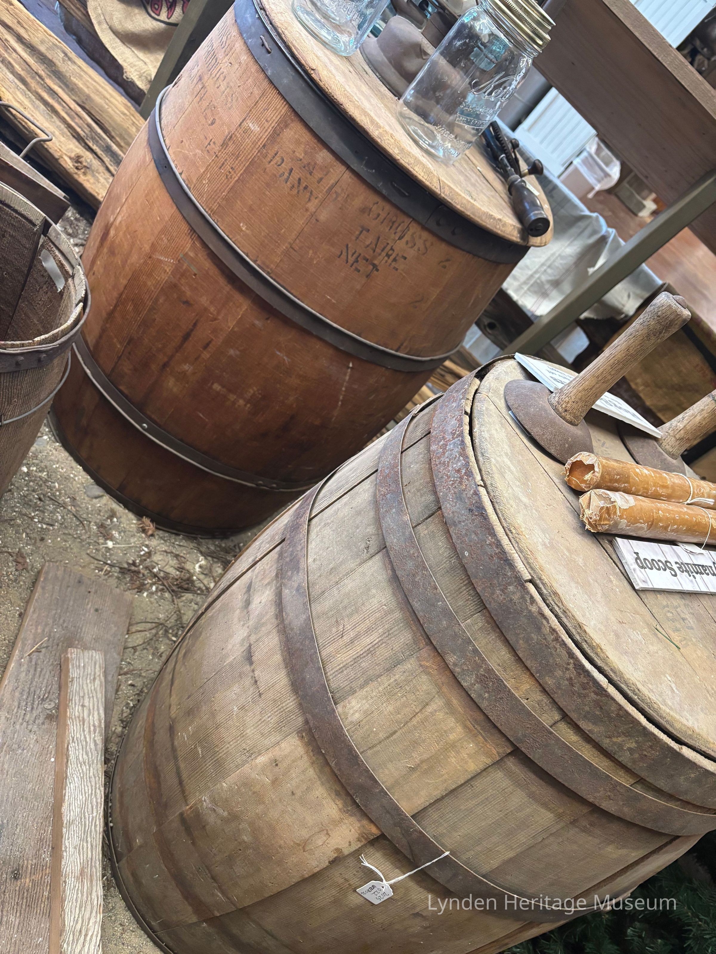 2025.022.025 - Tall round barrel, red-brown in color (barrel 1) 2025.022.026 - Round barrel, light brown in color (barrel 2)