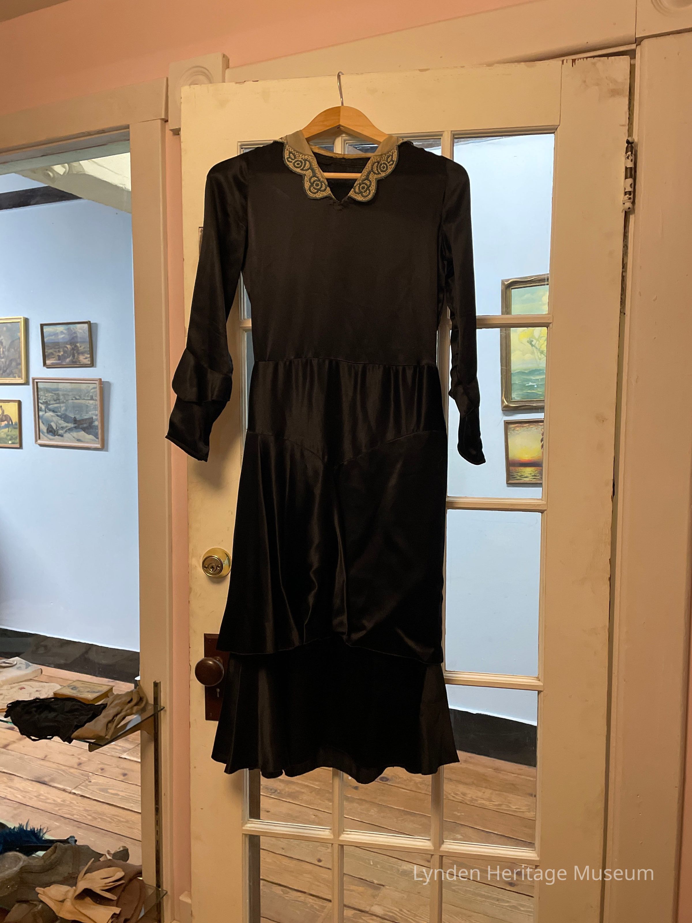 Black dress w/ tan & blue collar