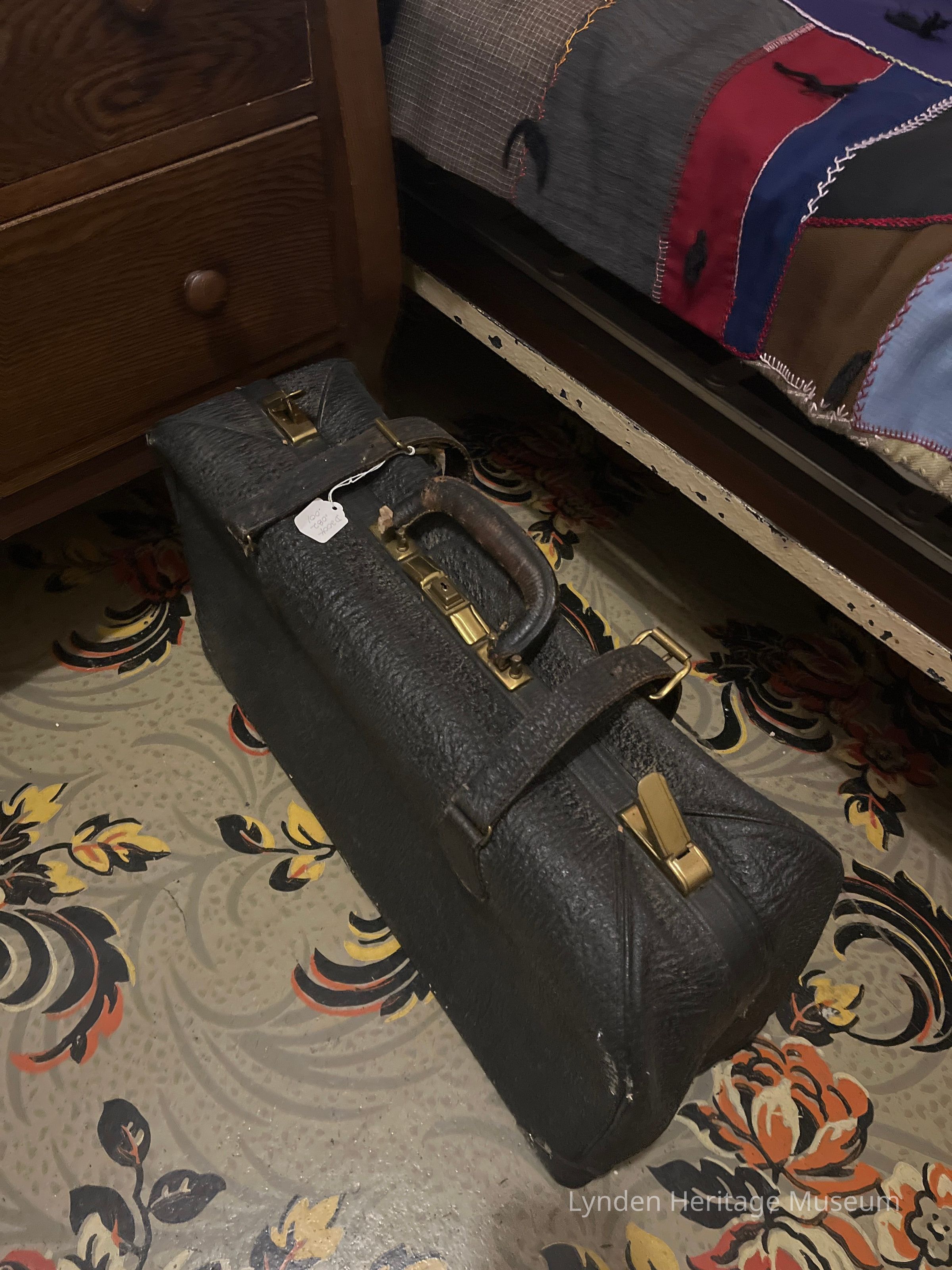 Gifted by Roger and Ilen Engler Black leather suitcase
