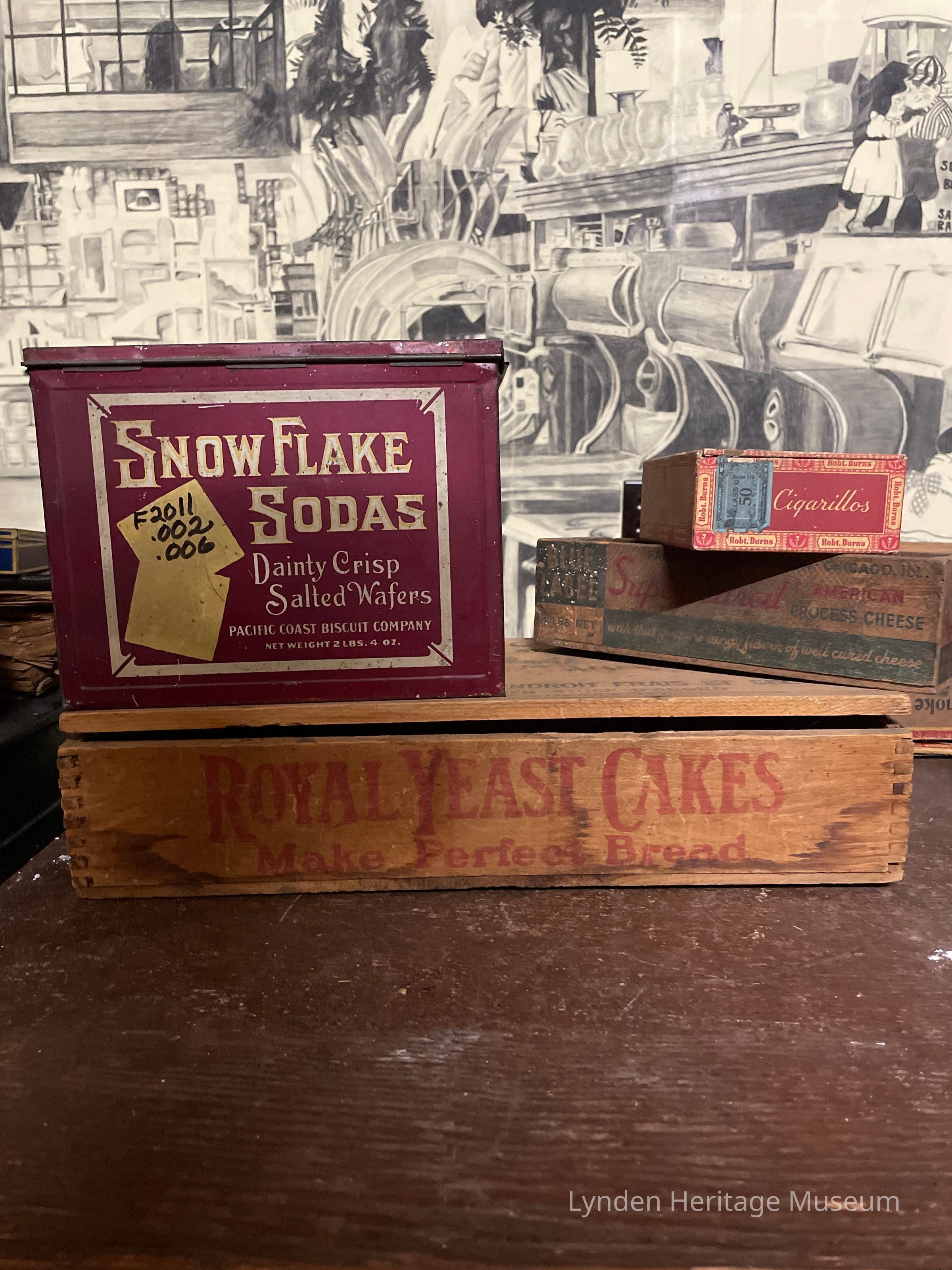 .003-Cigarillos Container .006-Wooden Cheese Container .007-Snowflake Soda Container .008-Royal Yeast Cakes Box