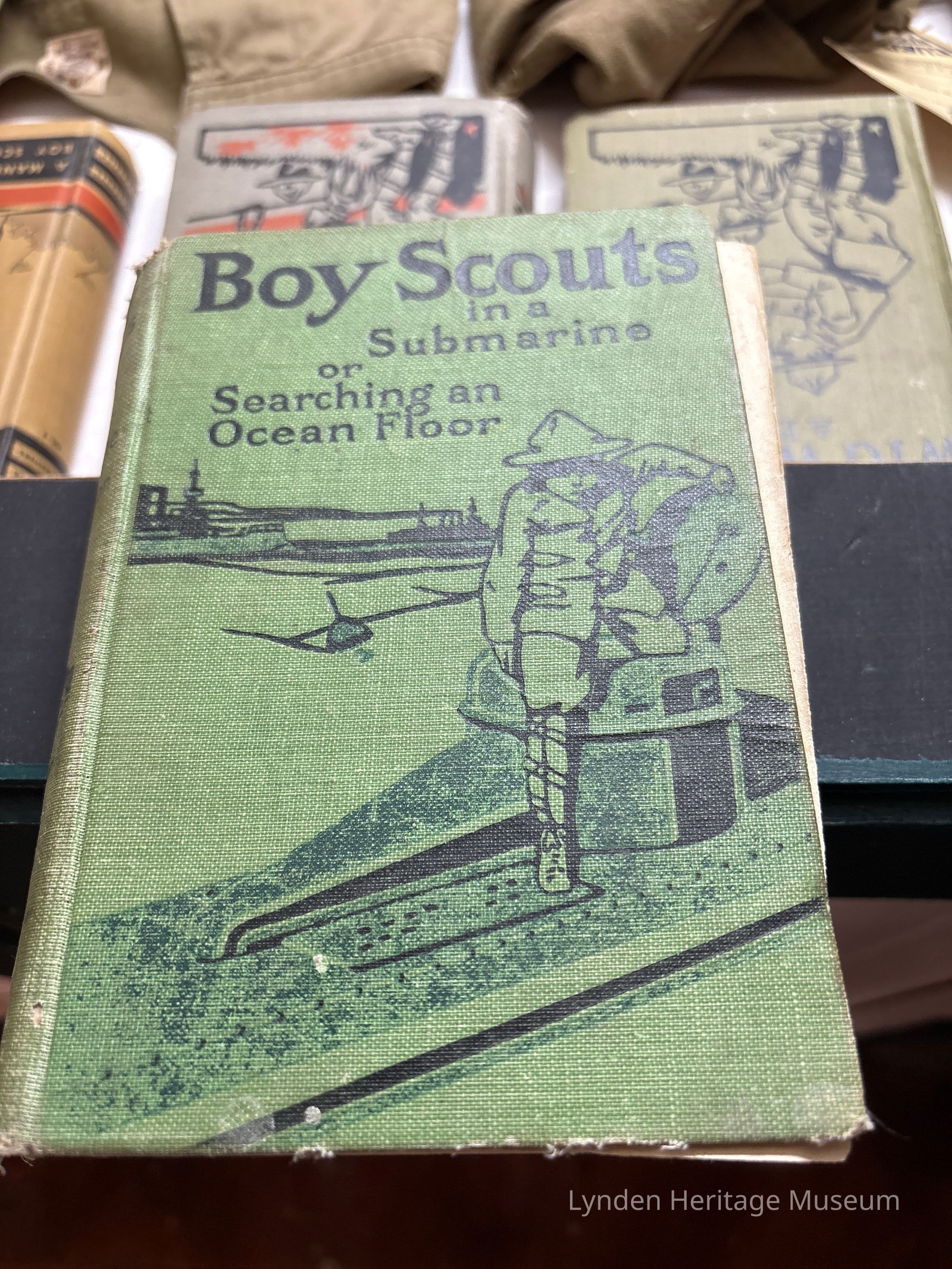 Green cover with black text, “ Boy Scouts in a Submarine or Searching an Ocean Floor”. Inside front cover note states in black ink “ Xmas 1920 to Warren Jeffcott”.Location