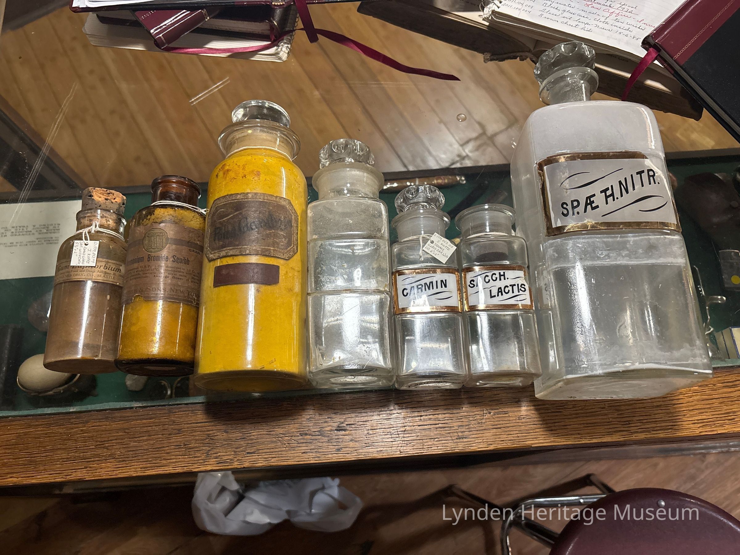 1999.053.009 - smaller round bottle with label " Powd. Gum Euphorbium", has brown powderAcquisition
