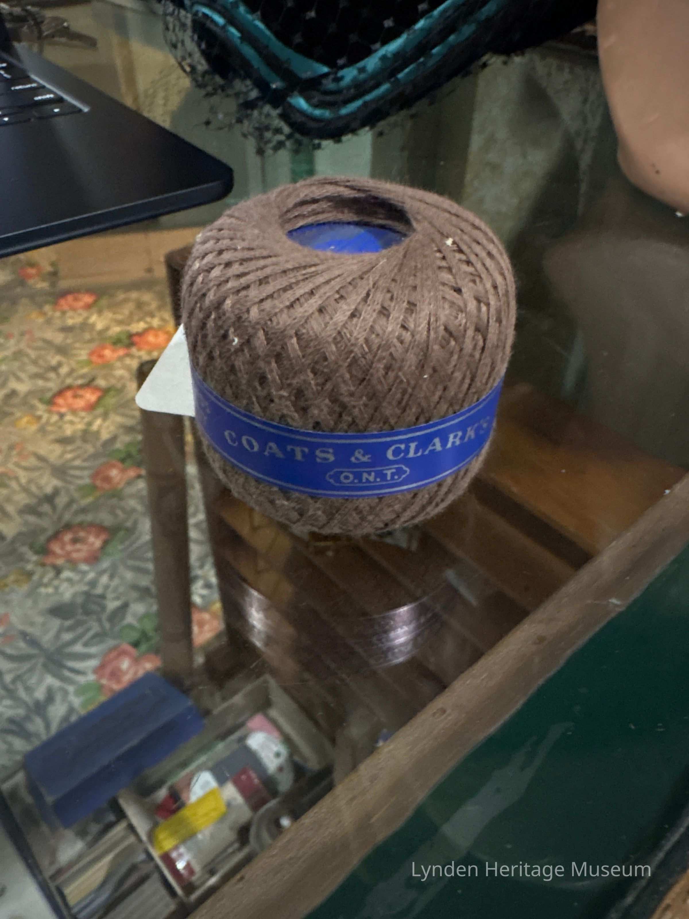 1.Brown cotton string. Item has blue label with silver text. 2. Spool of white thread