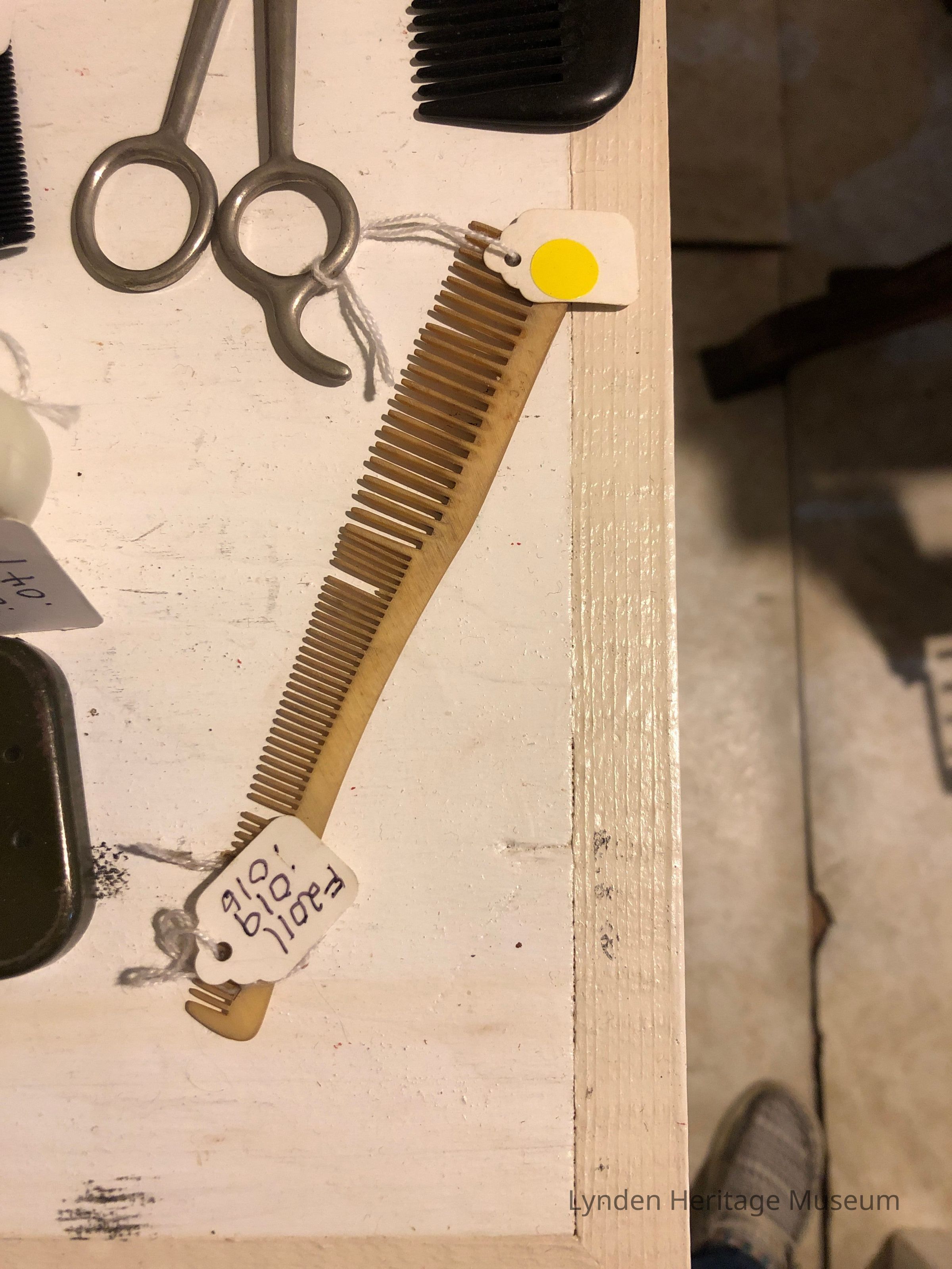 Beige comb. Comb has wide body and narrows towards end.