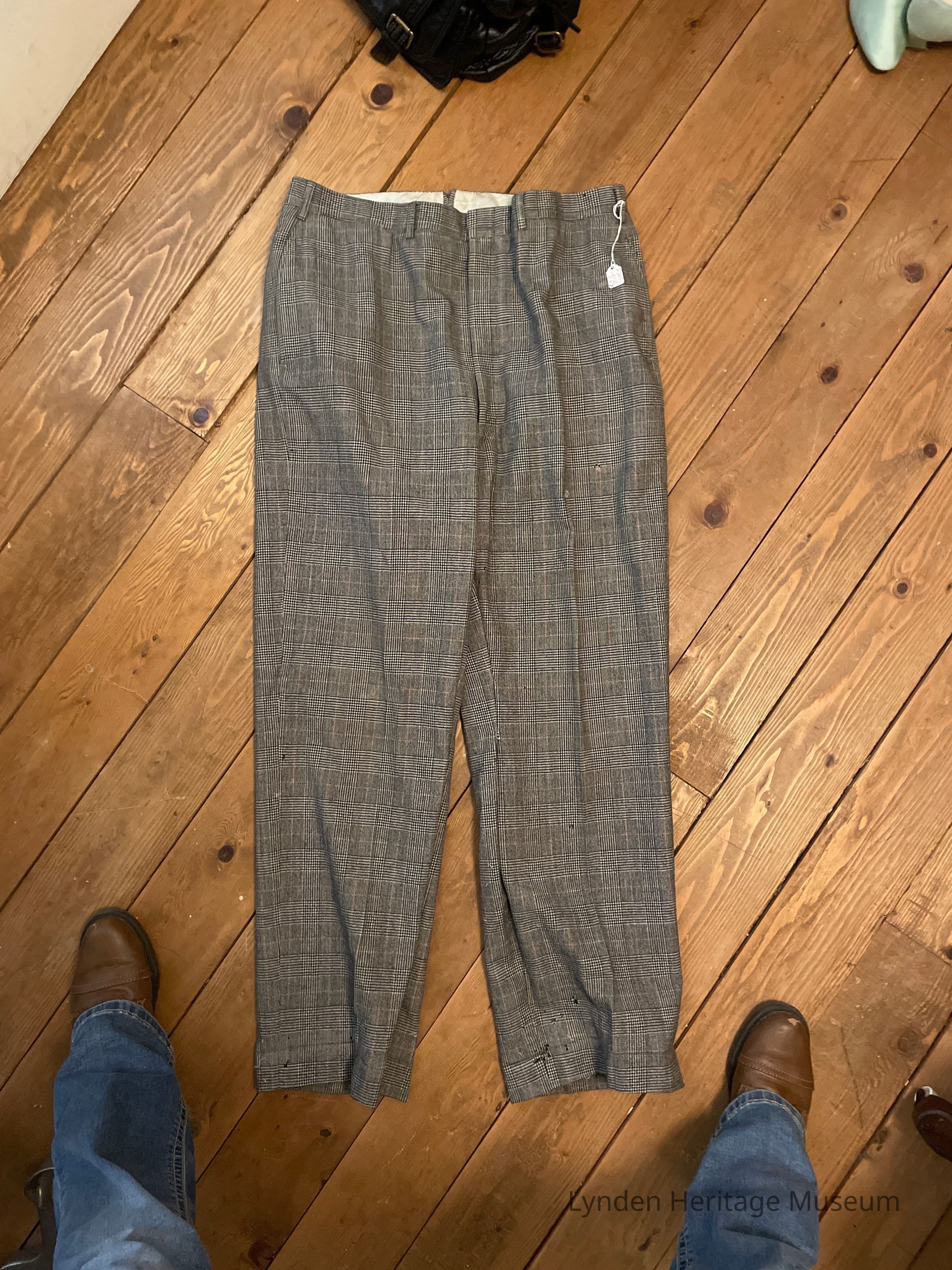 Dark plaid trousers