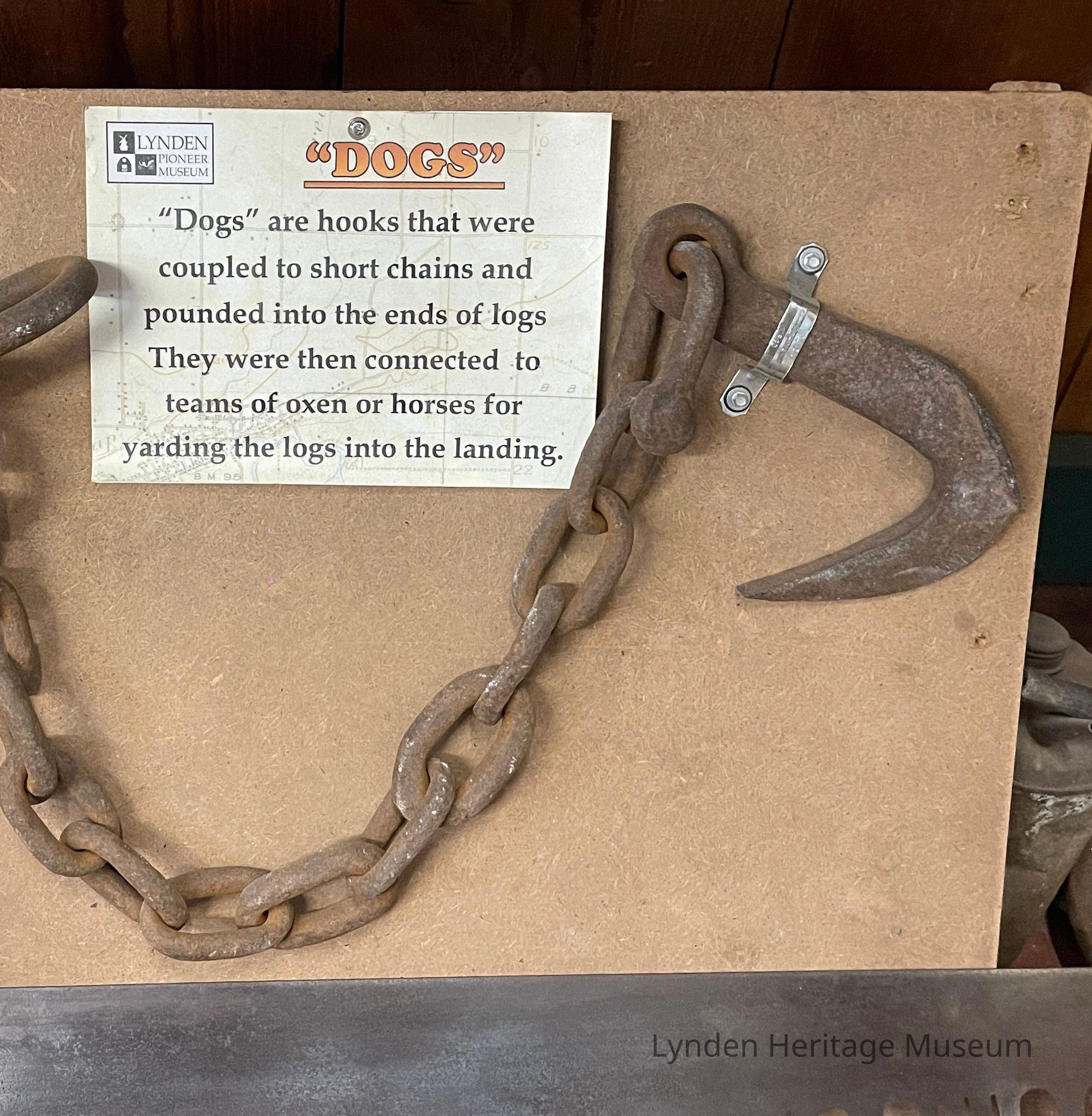 Hooks that are attached to short chains and pounded into the ends of logs and then connected to teams of oxen or horses for yarding the logs into the landing.Collection