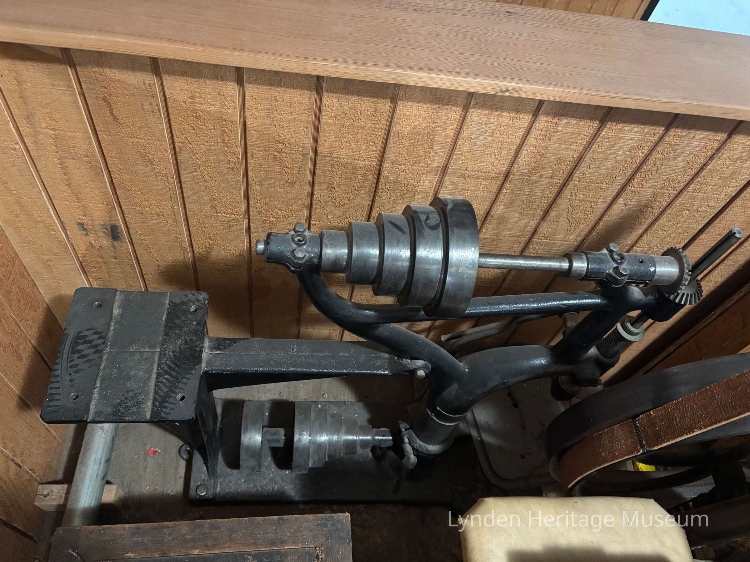 Five speed drill press, black metal, with bench + lever. approximately 35" high