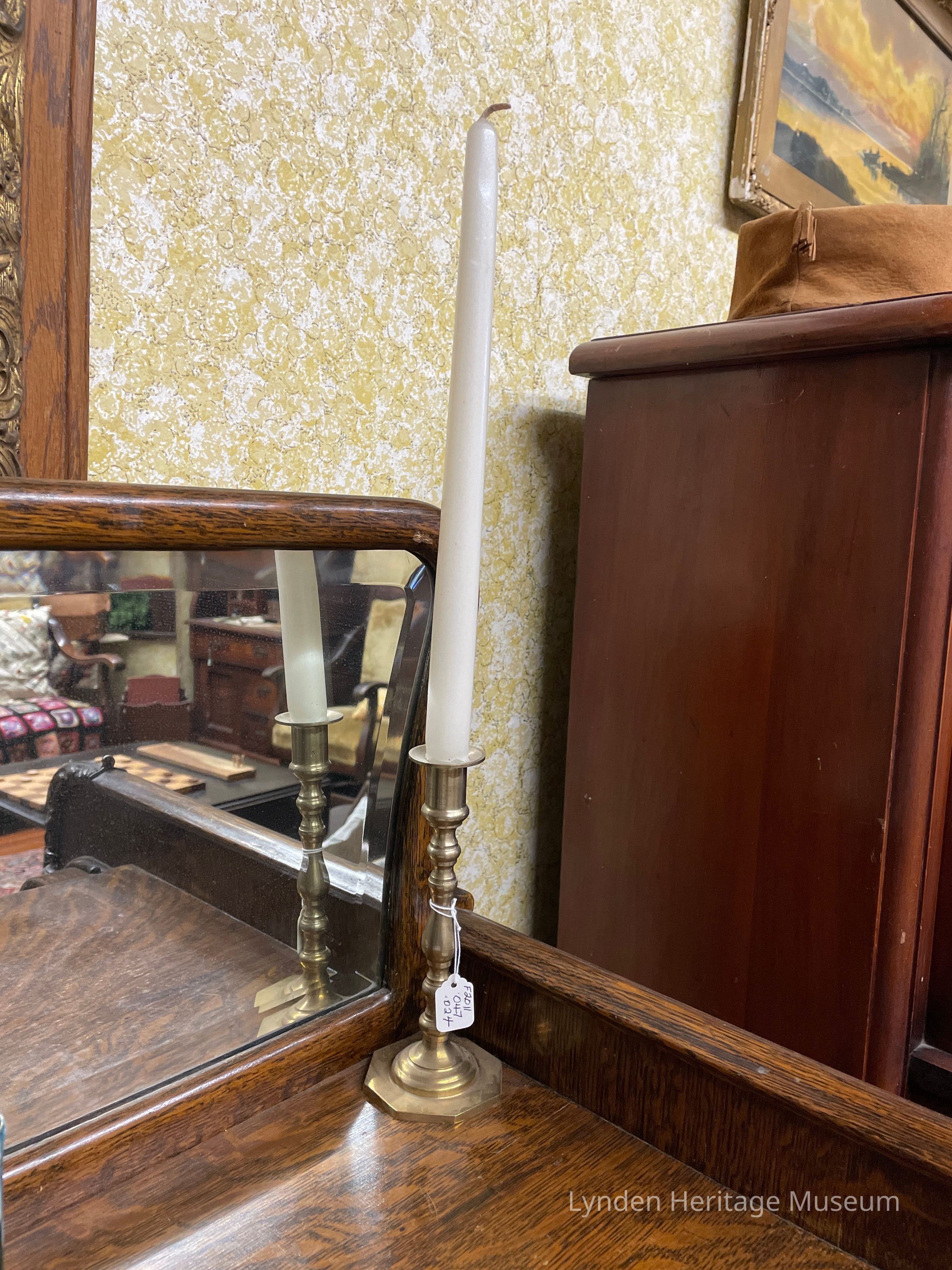 Gold candle stick w/ candle